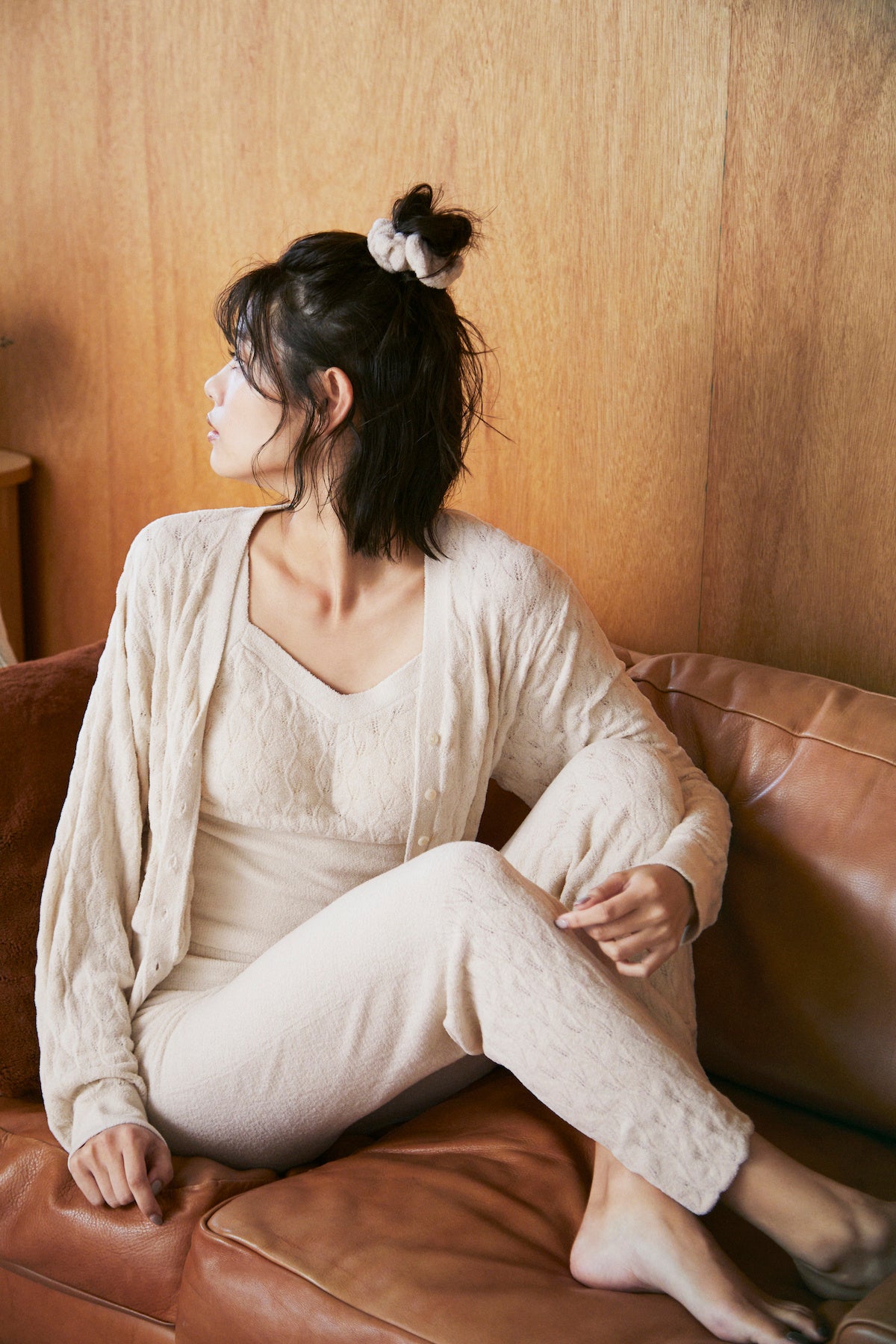 唯一無二の“透かし編み”をデザインに取り入れたニットランジェリーは、肌にやさしくフィットしながら、着るだけで気持ちよく自然と体を温める。糸を使い切るミニマルでサステナブルな温活ライフを、あなたへ。