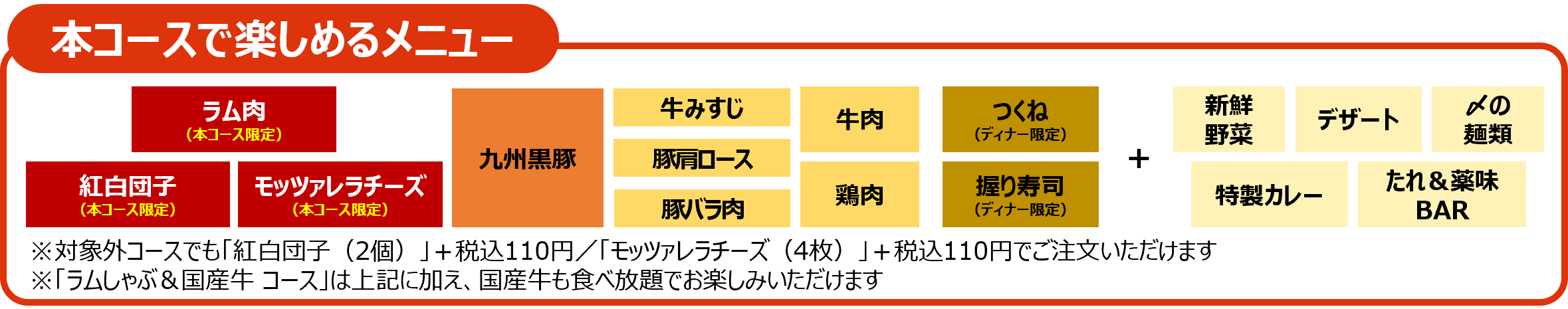 ※12/26~1月上旬の期間のみ「ラムしゃぶ&国産牛 コース」を中止させていただきます