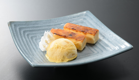 『蜜芋(安納芋)あいすと十勝カタラーナ』 税込720円 蜜芋(安納芋) 特有の濃密でしっとりとした甘さをお楽しみいただけるアイスと、北海道・花畑牧場が誇る「十勝カタラーナ」を組み合わせた一皿。十勝カタラーナは、アイスのようになめらかな口どけで、香ばしく焦がしたキャラメルのほろ苦さが絶妙に調和し、蜜芋アイスとともにひとくちごとに贅沢な美味しさが広がります。