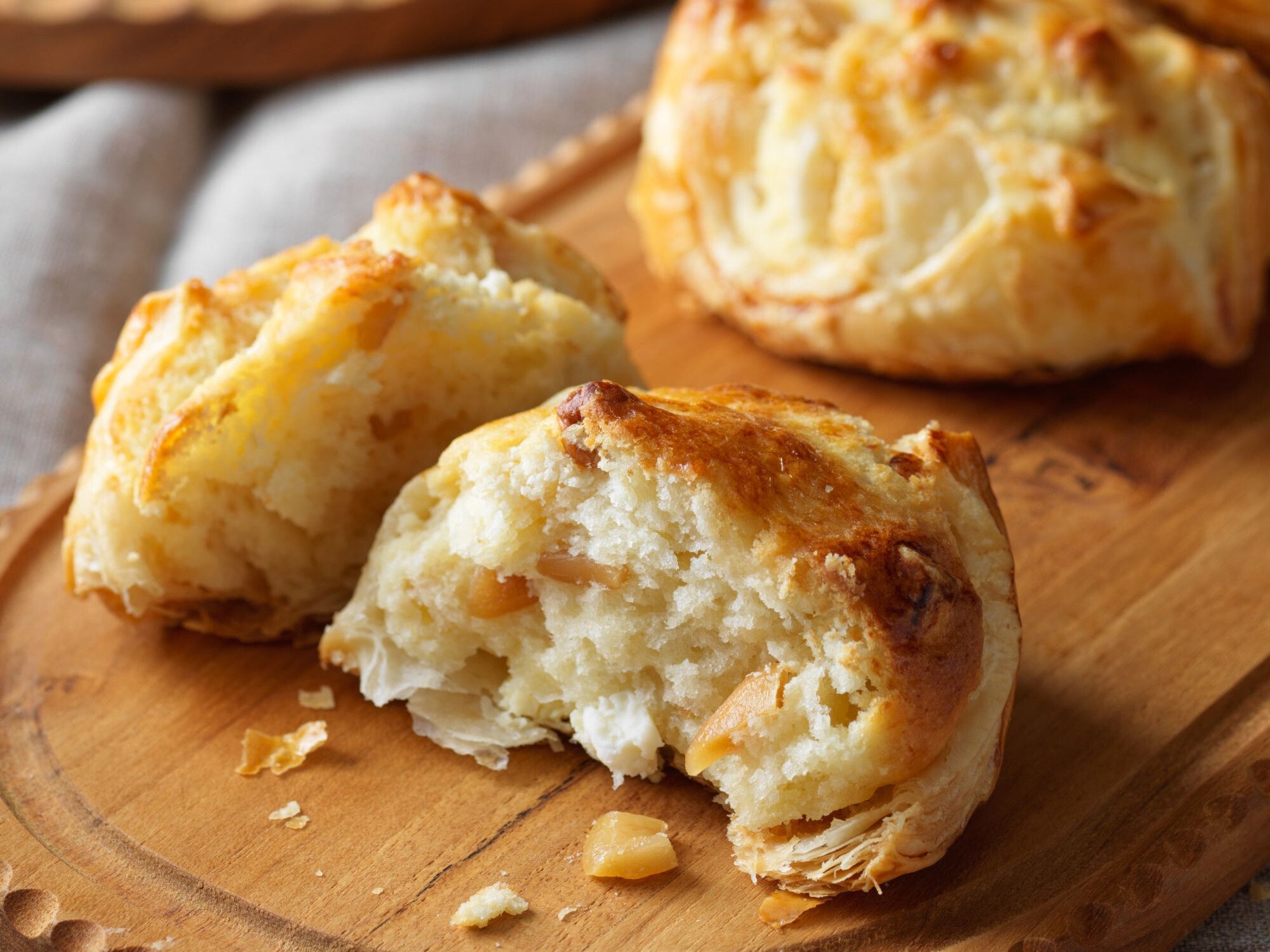 ルタオは、チーズへの飽くなき探求心と製法への徹底的なこだわりを注ぎ込み、これまでにない新しいスコーン「スコーンフィ」を完成させました。本商品の最大の特長は、手間を惜しまない「フィユタージュアンヴェルセ(逆さ折り込みパイ)」製法を採用している点にあります。この独自の製法が、一般的なスコーンのイメージを覆し、スコーンのしっとりとした食感と、パイのサクサクとした軽やかな食感という、相反する魅力を両立させました。一口食べれば、厳選されたチーズの芳醇な味わいとともに、繊細な食感のグラデーションをお楽しみいただけます。優雅な朝食や午後のティータイムなど、お客様の日常を豊かに彩る上質なひとときを演出します。
