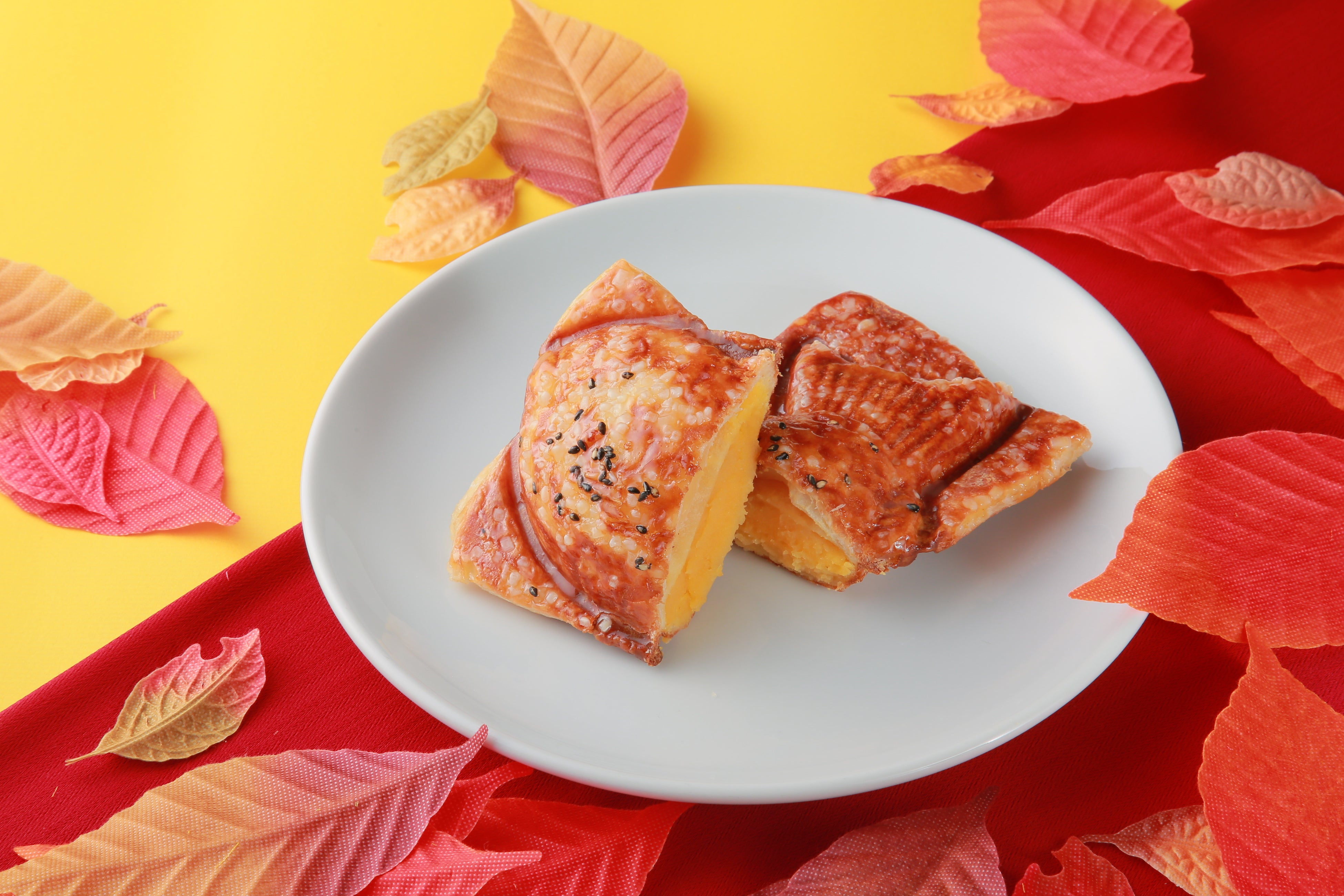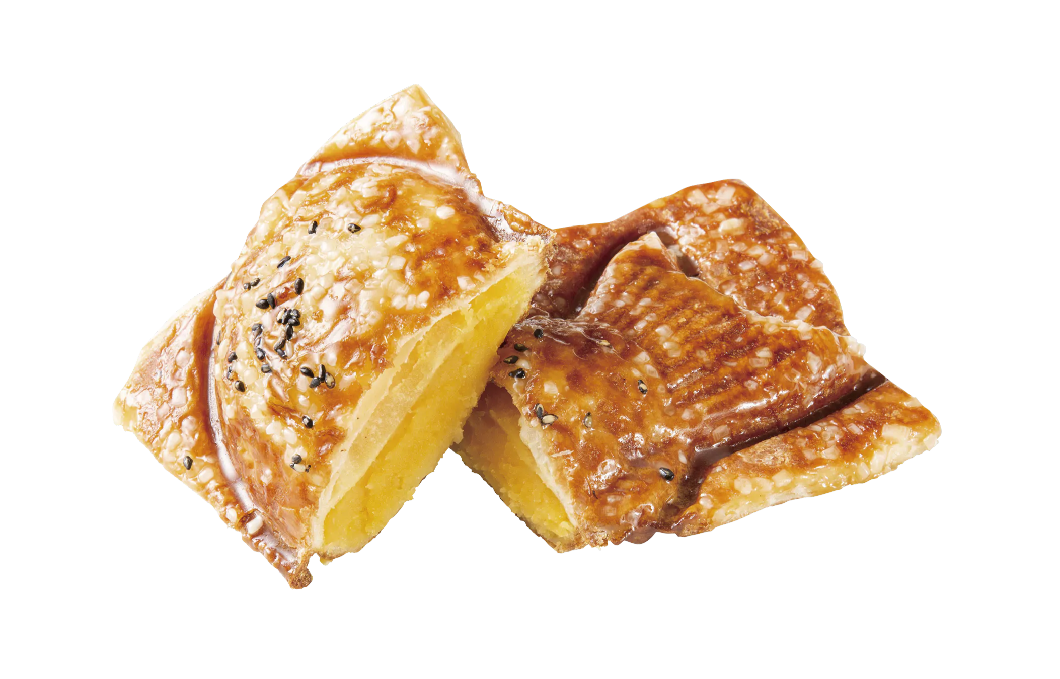 “鹿児島県産安納芋100%使用” の「安納芋ペースト」と、上品な甘さに仕上げた「特製芋あん」を独自の2層仕立てにすることで、 “安納芋” 本来の濃厚な味わいに仕上げました。また、特製のクロワッサン生地は、表面(片面のみ)に“ザラメ糖”と“ごま塩”をトッピングし、両面から高温で丁寧に焼き上げることで、外側は香ばしくサクサク、中の餡は口どけなめらか。2種類の食感のコントラストをお楽しみいただけます。