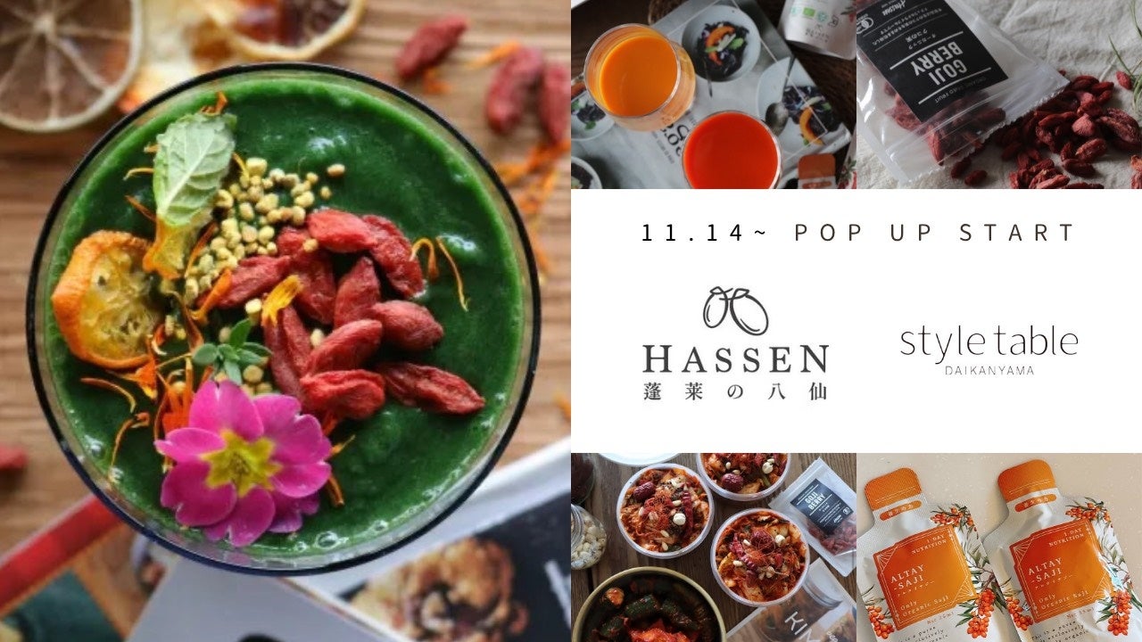 株式会社フラッグ(東京都港区、代表取締役:吹上直子)が展開するセレクトショップブランド「style table(スタイルテーブル)」の「style table DAIKANYAMA本店」(運営:株式会社Liberty、本社:東京都渋谷区、代表取締役:三上結香)は、株式会社八仙(代表:野々口明瞳(美)、本社:東京都台東区)とのPOP UPイベントを11/14(金)より開催します。