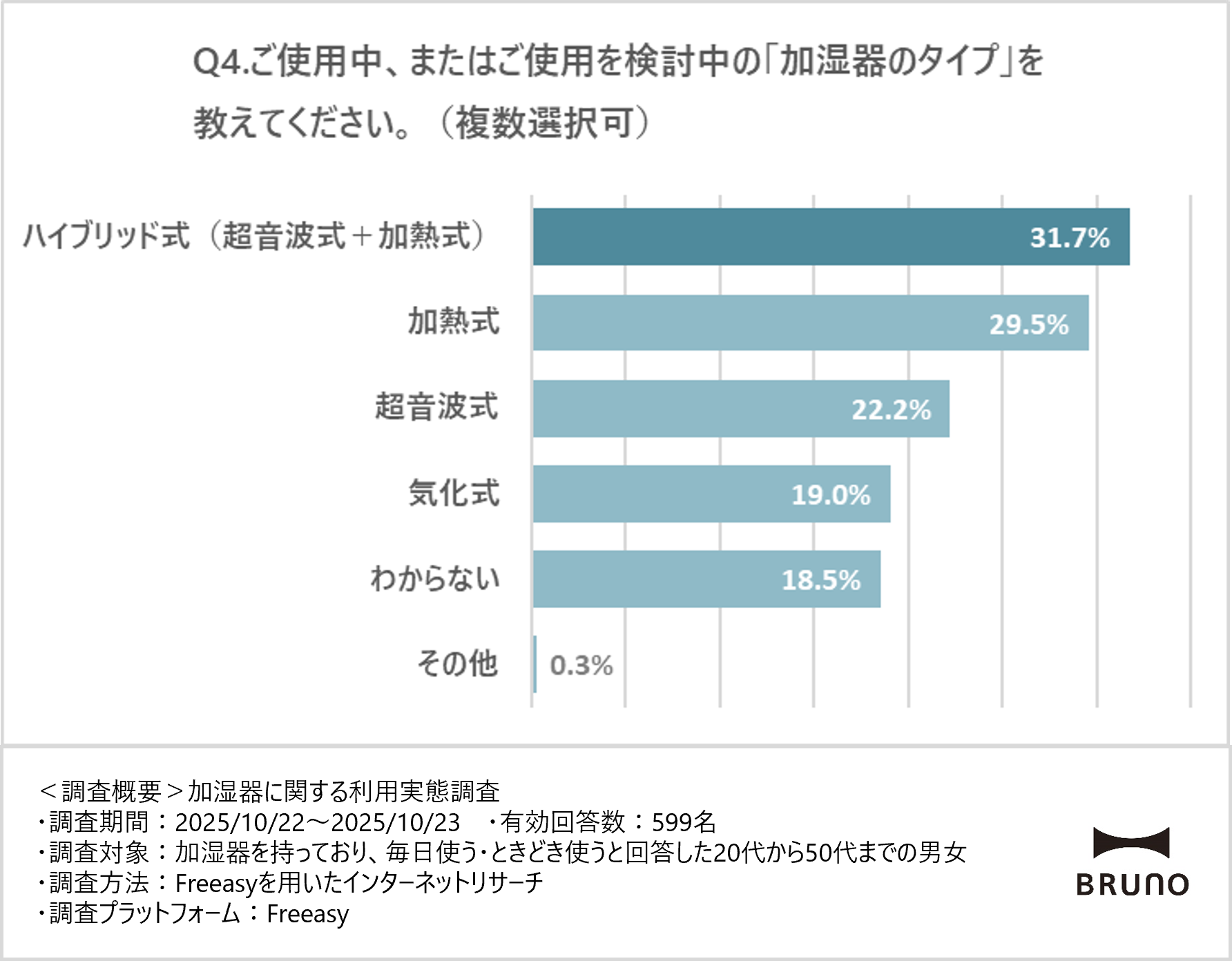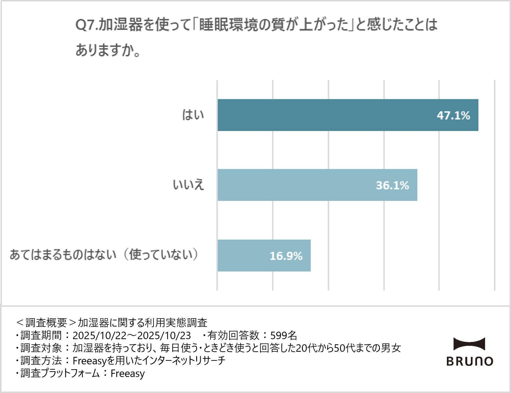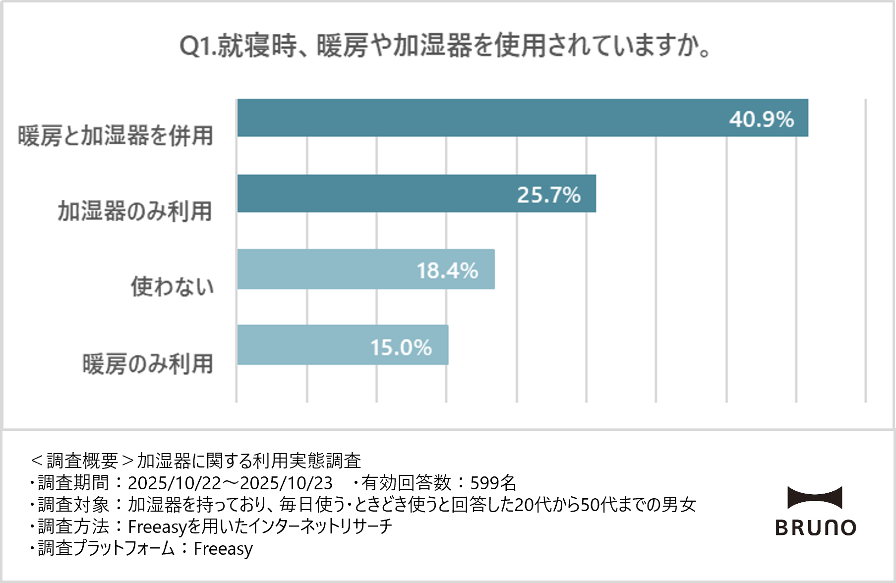 ※本リリースに含まれる調査結果を引用する際は、「BRUNO調べ」と明記してください。(記載例:BRUNO 調べ「加湿器に関する利用実態調査」)