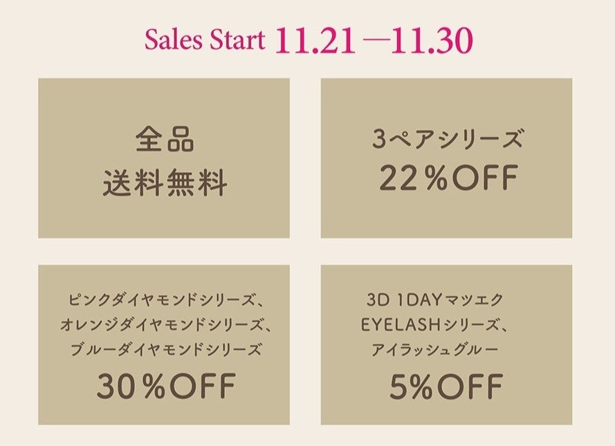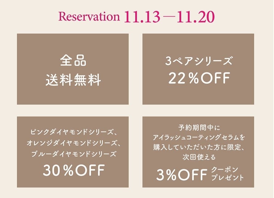 ・アイラッシュコーティングセラム予約販売期間中に予約購入頂いたお客様限定!次回使える3%OFFクーポンプレゼント!