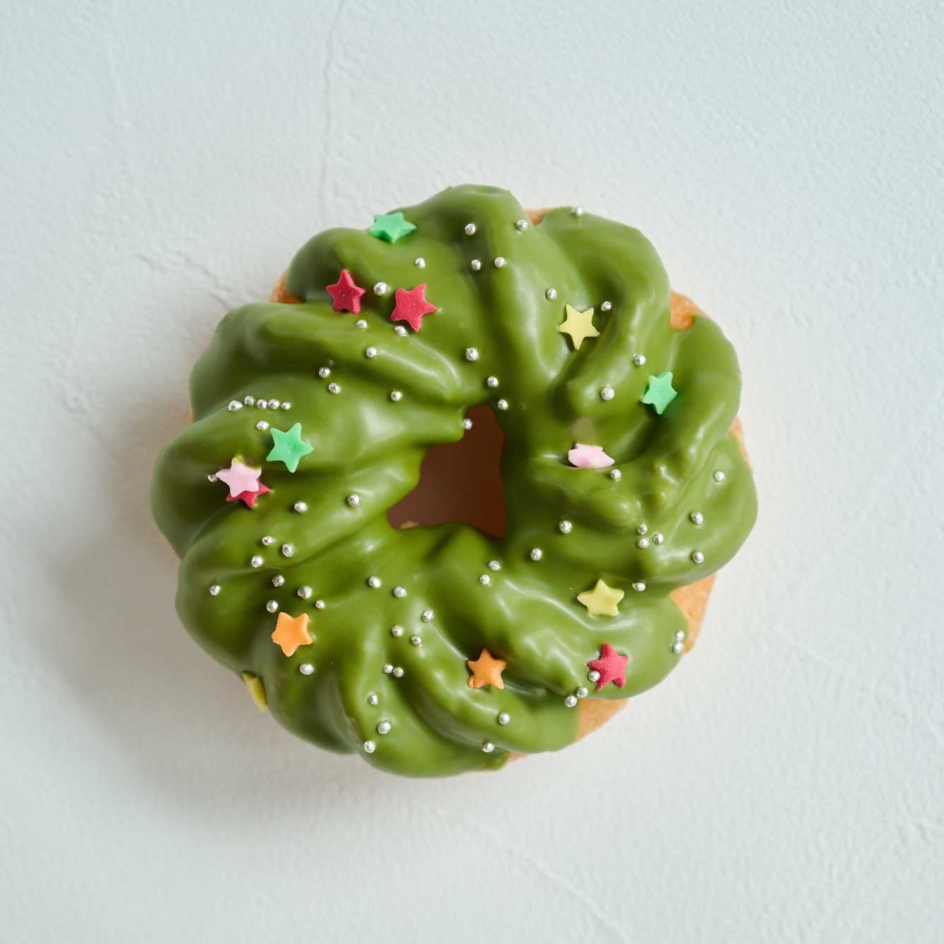 クリスマスリース 450円フレンチクルーラーの軽やかな生地に抹茶チョコをコーティング。