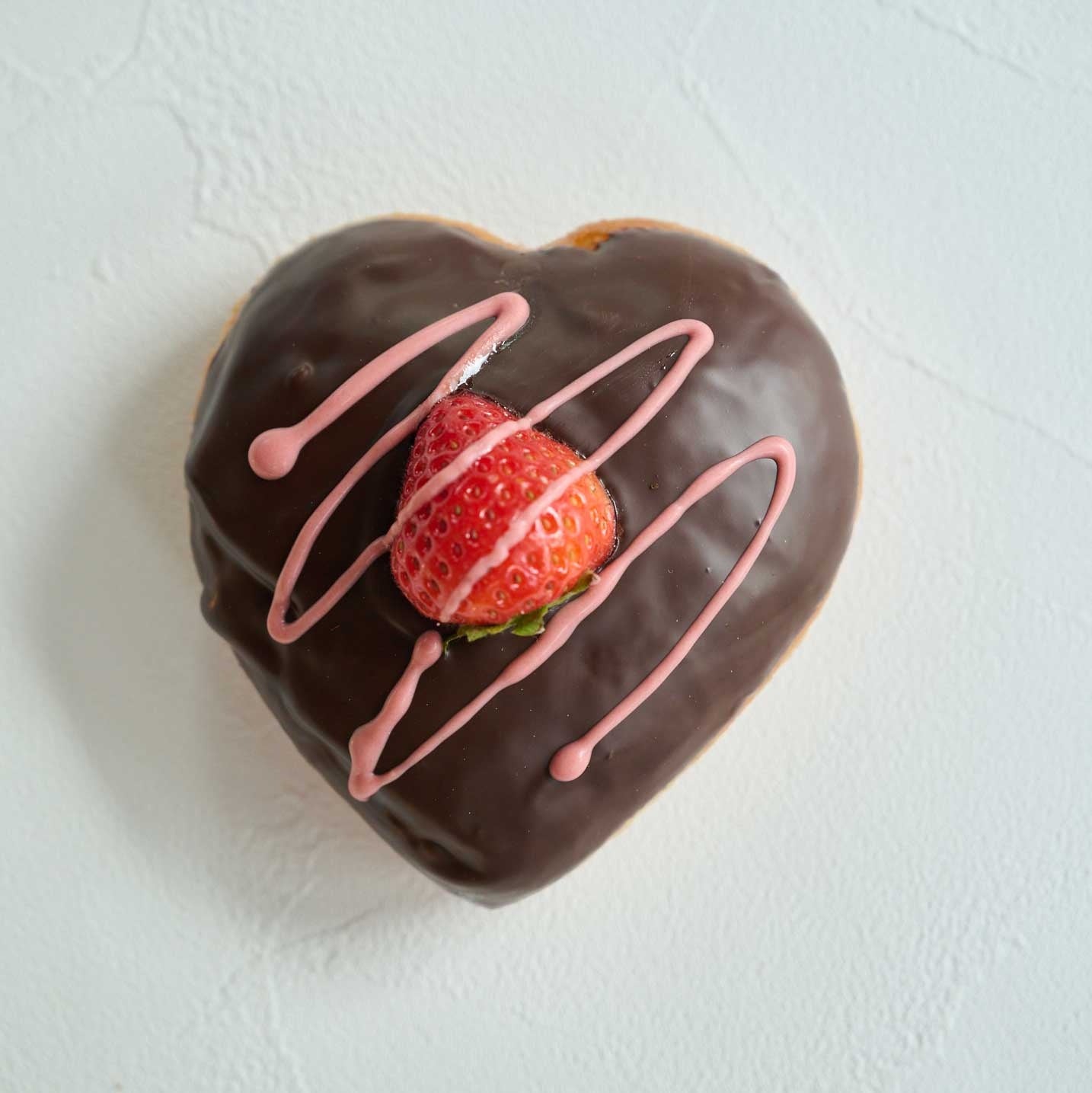 甘さとほろ苦さ、そしていちごの酸味が重なり合う、見た目も味わいも贅沢な“チョコレートラバーズドーナツ”です。