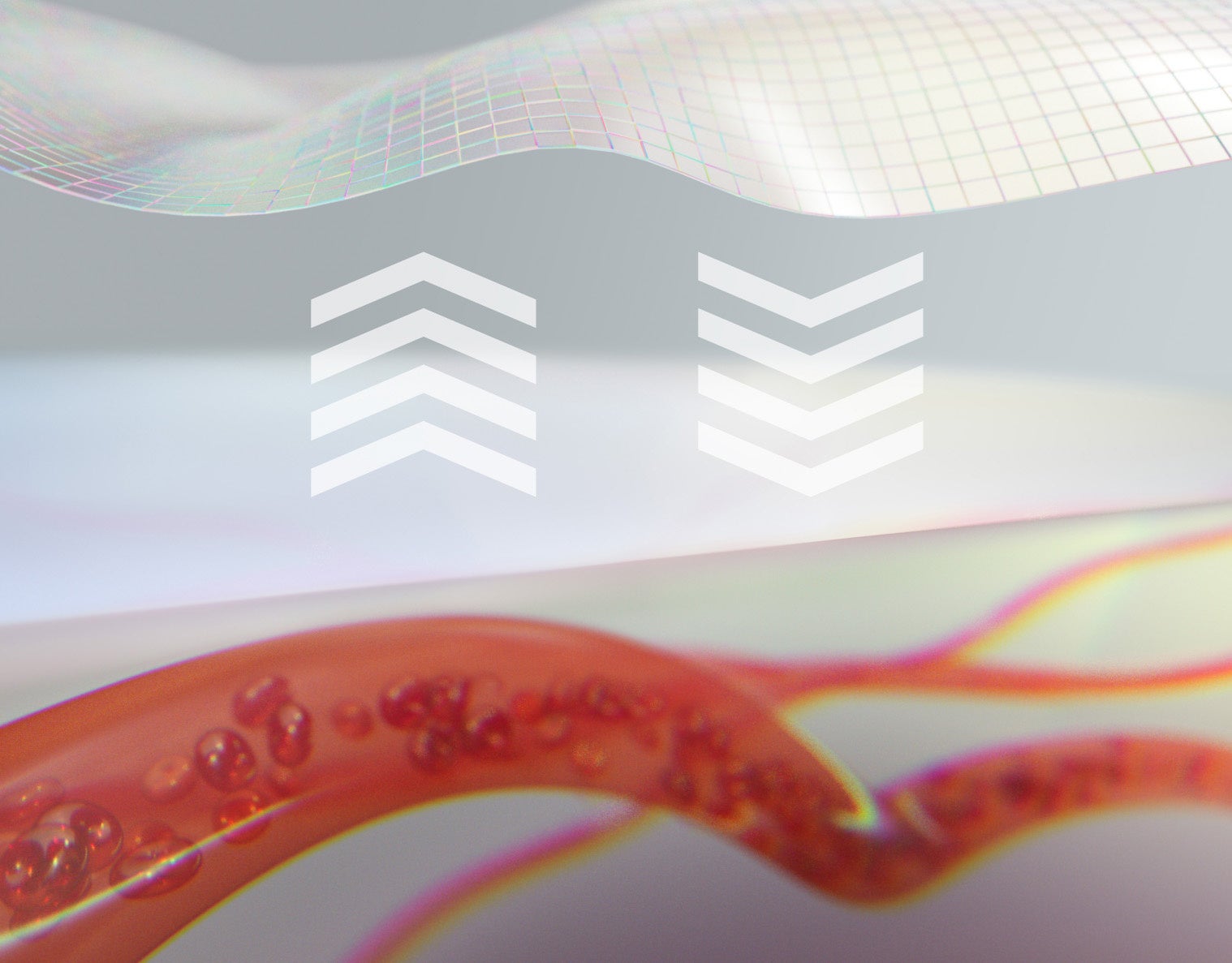 いかに薄く生地を開発できるか。それがリカバリーウェアの機能性や利便性を左右します。ReD に使用されている⾎行促進繊維VITALTECH(R)は、MTG 独自の繊維テクノロジー。極微細に粉砕された8 つの