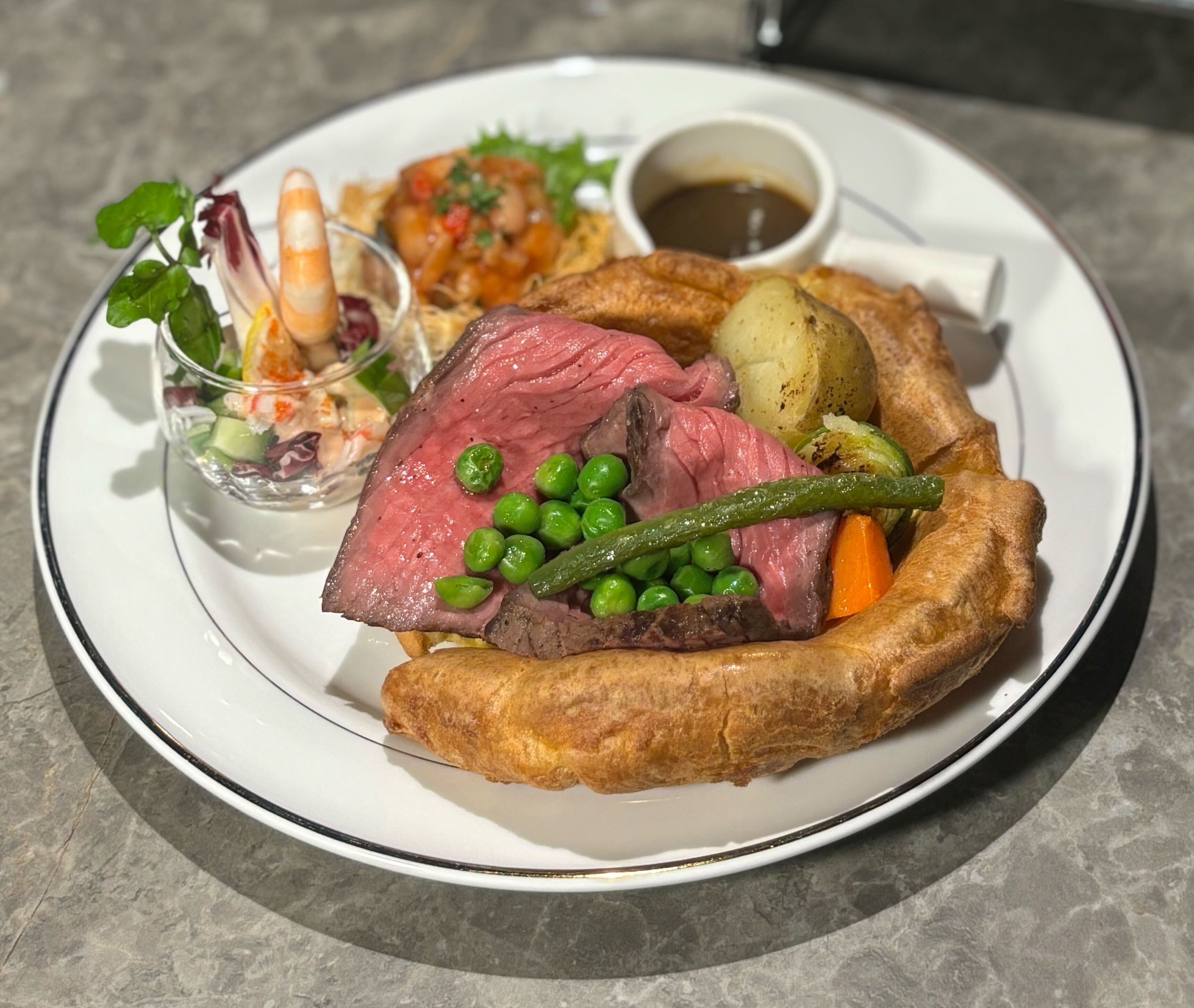 イギリスの伝統的なご馳走をヨーク地方パブ風の盛り付けで提供します。