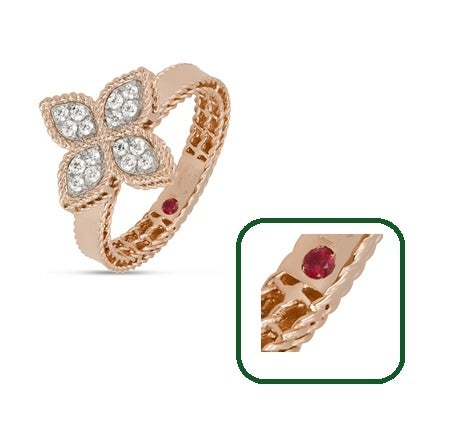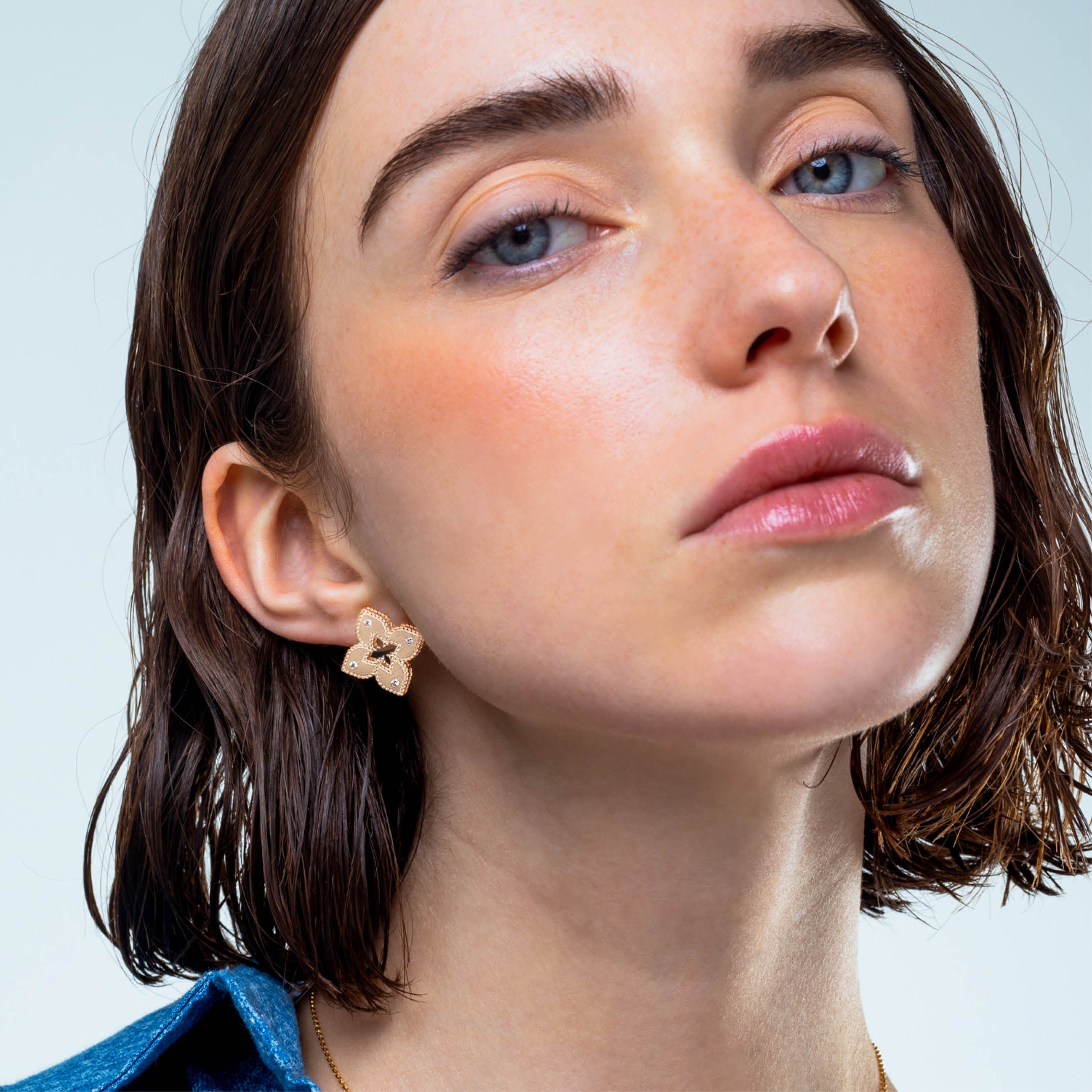 「ラブ・イン・ヴェローナ」コレクションのジュエリーは、私たちをロマンティックな世界へと誘います。ヴェローナは、文学における愛の象徴であるロミオとジュリエットの街として誰もが知っていますが、ヴェローナに特別なクラブがあることは、あまり知られていません。 1930年の設立以来、ジュリエット・クラブは、世界中からジュリエットに宛てて届くラブレターを読み、返事を書く女性たちのグループです。届いた手紙はすべて、ヴェローナの中心にある愛のアーカイブに保管されます。これが「ラブ・イン・ヴェローナ」コレクションのインスピレーションです。 デザインは、プリンセス・コレクションで特徴づけられる象徴的な4枚の花びらを持つ花を、作品の表面全体に繰り返し施しています。パターンの反復は、ヴェローナの象徴的な建築物であるアレーナと、その周囲を走るアーチの連なりを美しく想起させます。コレクションのミニマルなルックは、ゴールドのあらゆるカラーで展開されており、組み合わせることでトータルルックを演出できます。