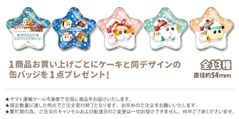 特典缶バッジはお選び頂いたケーキと同じデザインとなります。