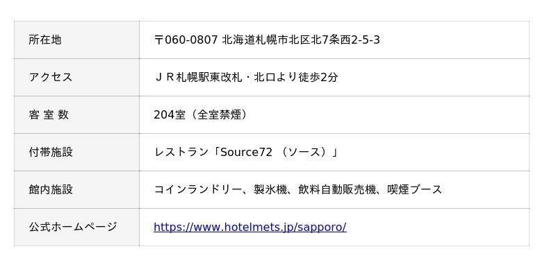 3.JR東日本ホテルメッツ プレミア 札幌 基本情報