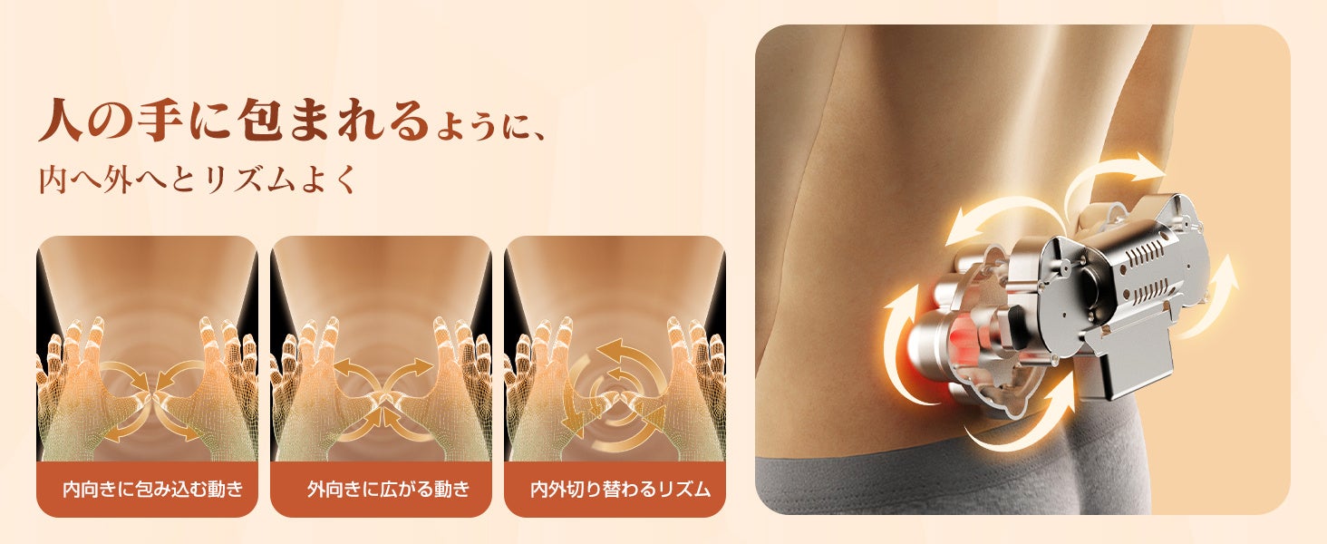 大きなヘッドはしっかりと包み込み、小さなヘッドは指先のように繊細にアプローチ。立体的なヘッド構造により、単調ではない深みのあるもみ心地を味わえます。