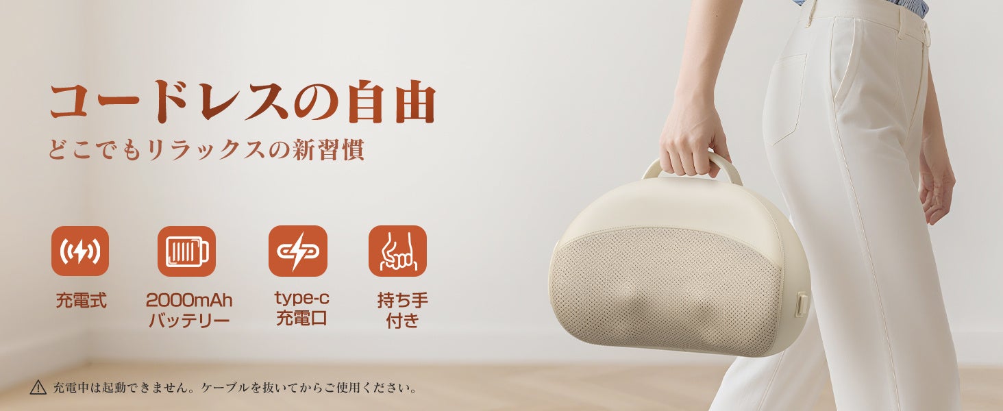 自宅・オフィス・車内など、好きな場所で使える軽量デザインです。2000mAhバッテリー搭載で、フル充電なら約5~6回(1回10分)の使用が可能です。