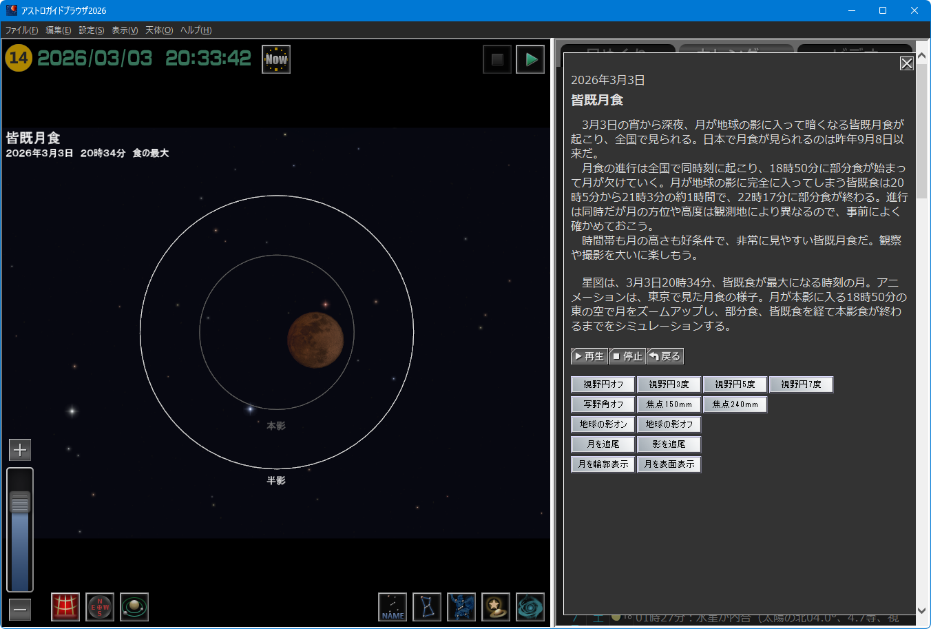 ●2026年の天文現象を再現「アストロガイドブラウザ2026」