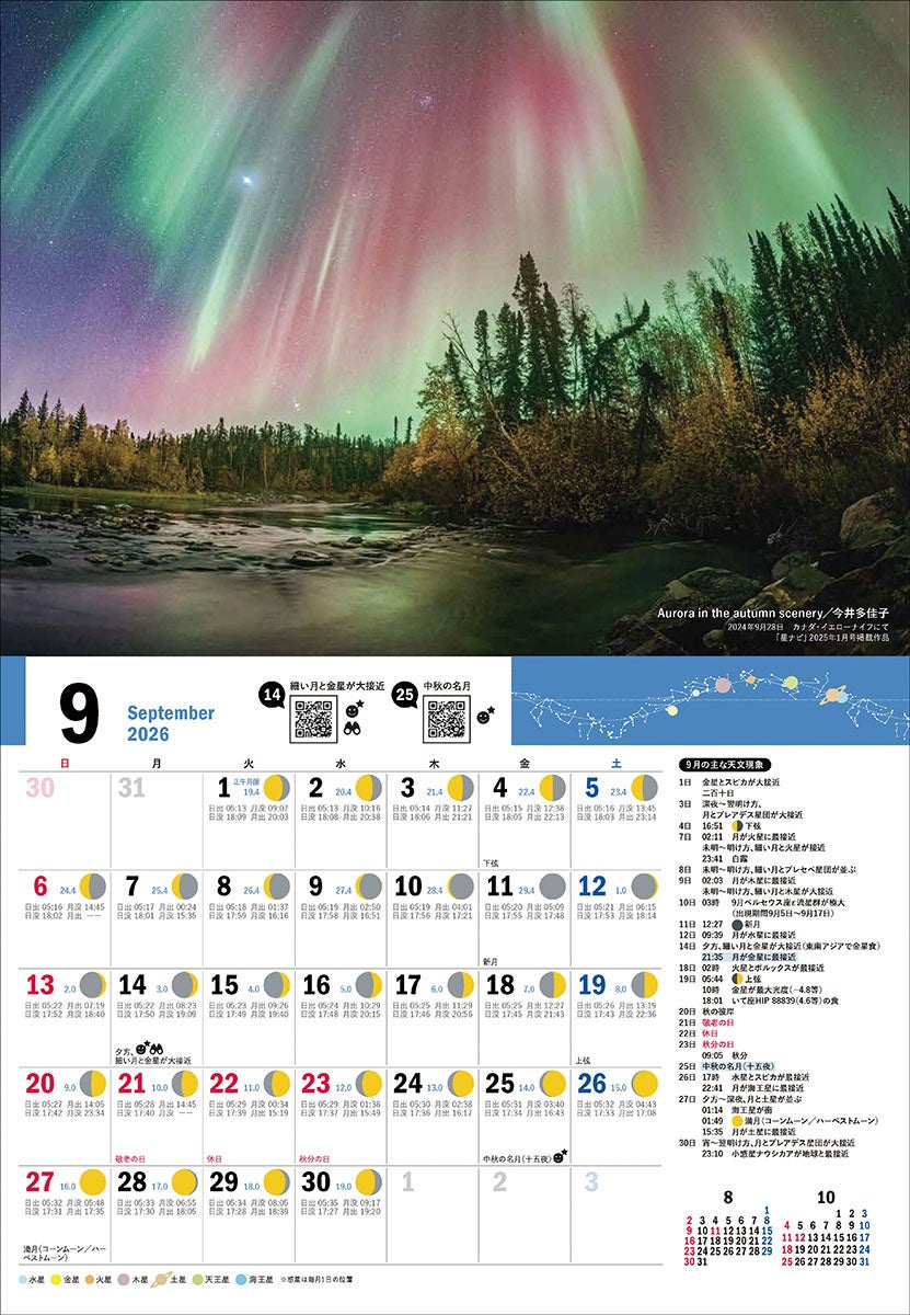 また、季節ごとの星空写真が楽しめる「壁掛けカレンダー」が付いた冊子「星空こよみ カレンダー 2026」も同日発売。2026年を星空とともに過ごすための情報が満載の2冊です。