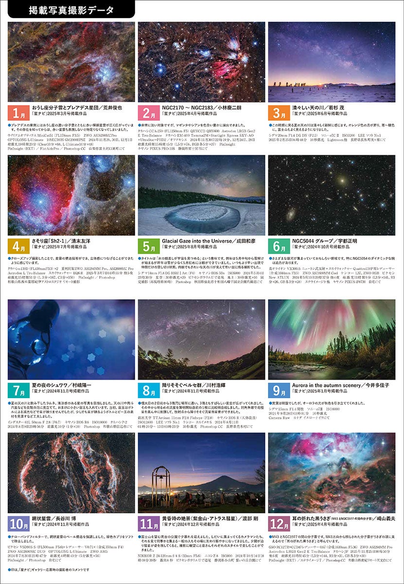 1月~12月の各月に掲載されている天体写真