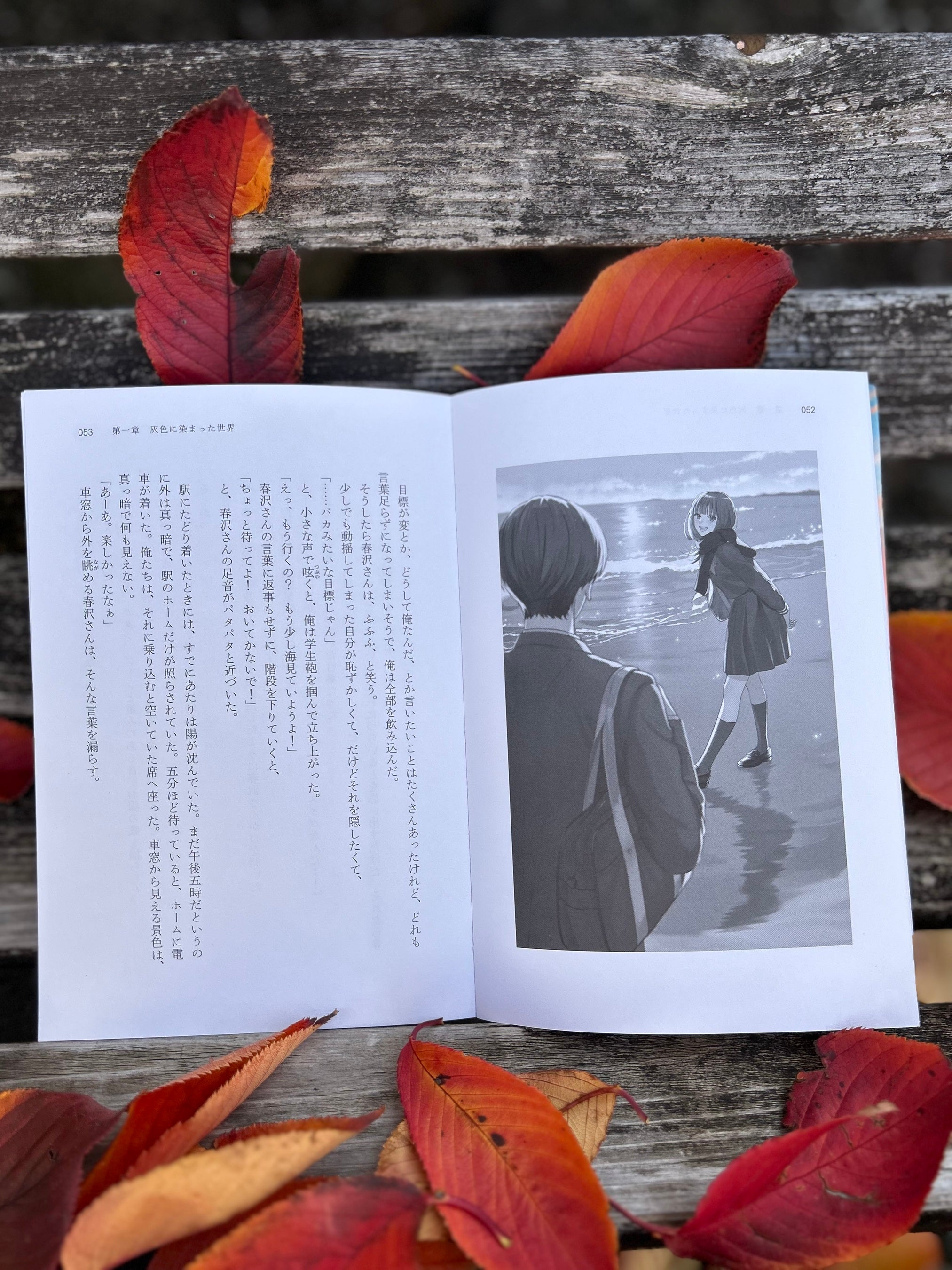 カバーおよび挿絵は、Xのフォロワー数22万人!の超人気イラストレーター、まかろんKさんが手掛けている。美しいマジックアワーの浜辺で自撮りをする主人公の男女がまぶしい。