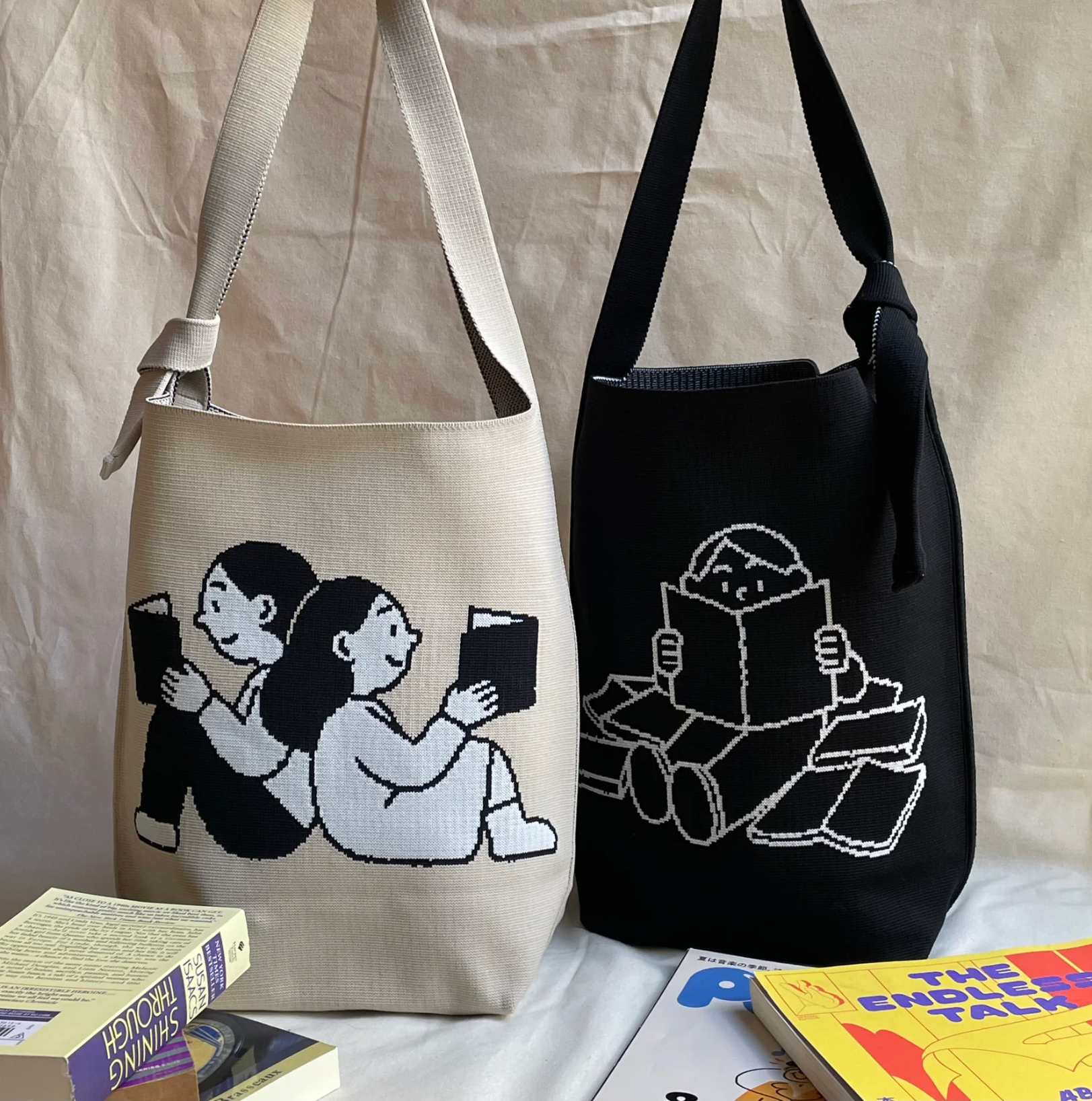 Wisdom Collectionのテーマ「本」をイメージした読書をしているイラストがとても可愛らしい作品です。マチをたっぷり備えているため自立するのもうれしいポイント。
