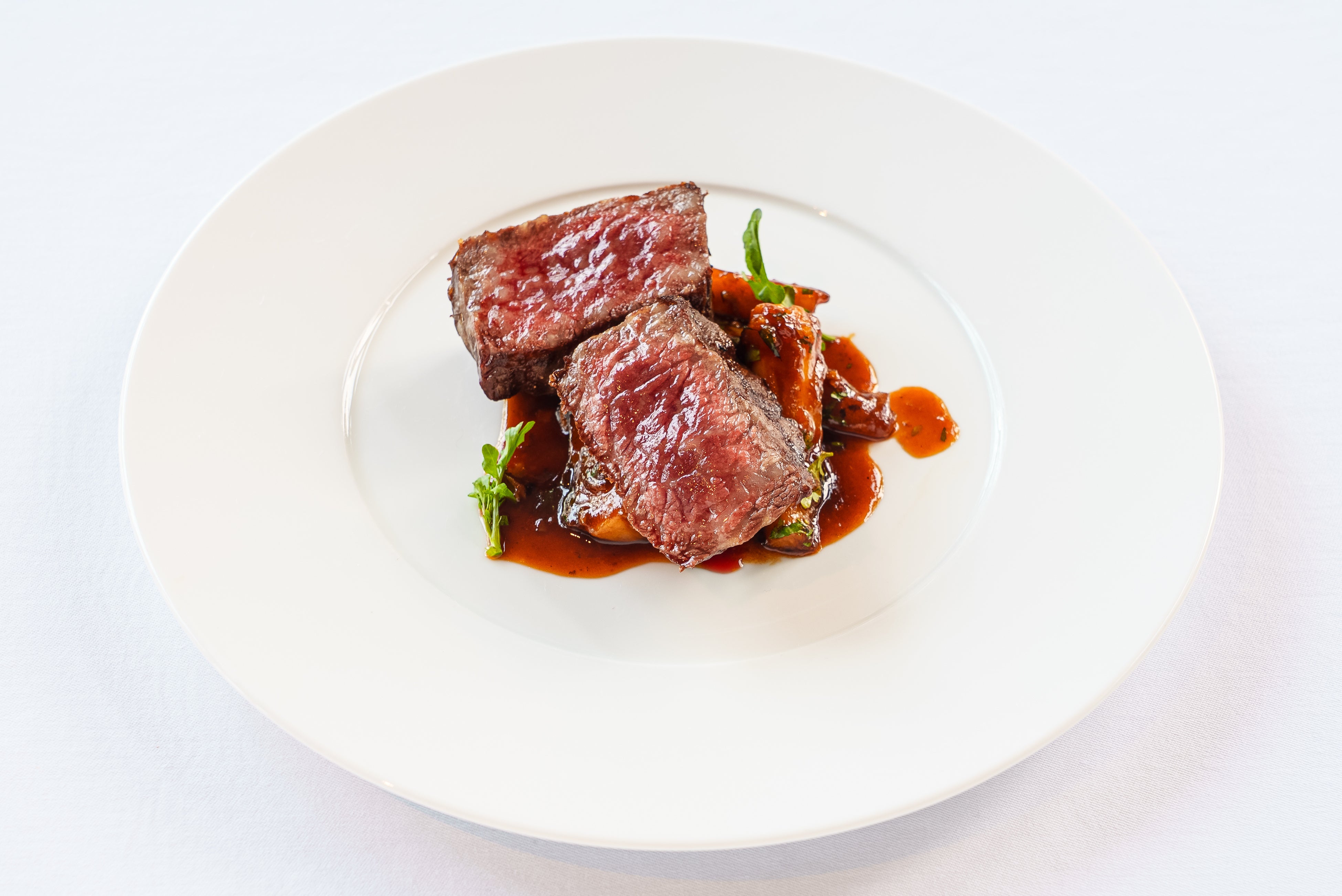 赤身とサシとのバランスが良い黒毛和牛ロースを使用したメインディッシュ。しっかりとした味わいの西洋野菜と生姜をアクセントにじっくりと煮詰めたフォンドボーソースが、肉本来のうま味を更に引き立てます。コクのあるソースが寒い冬にピッタリとマッチする一皿です。