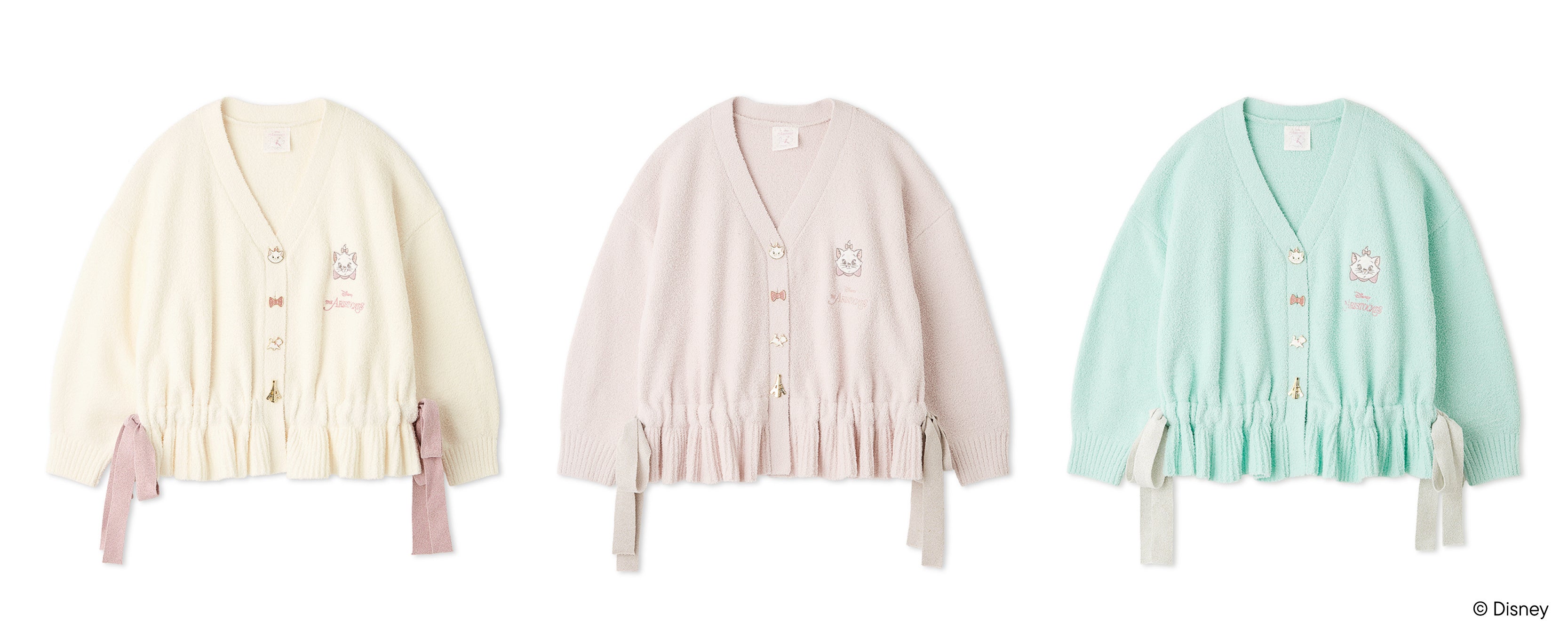 カーディガンはギャザーで裾を絞るデザインがキュートな仕様に。