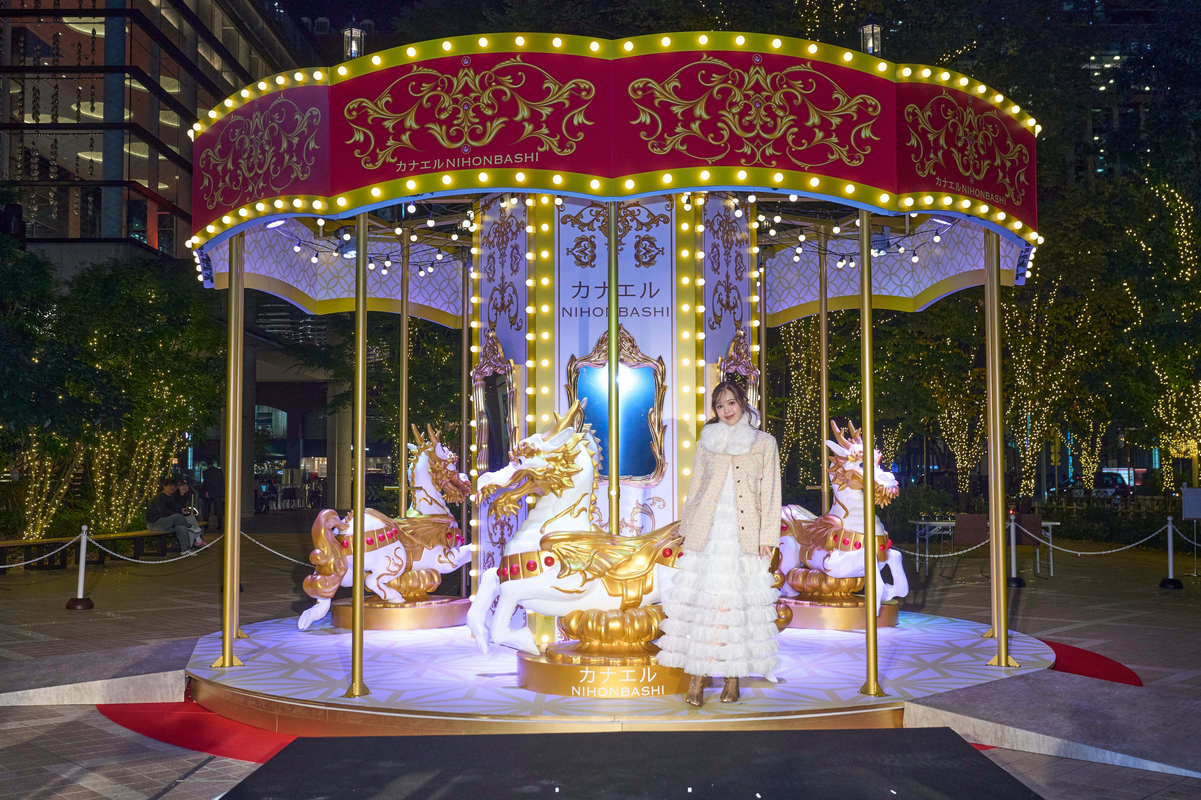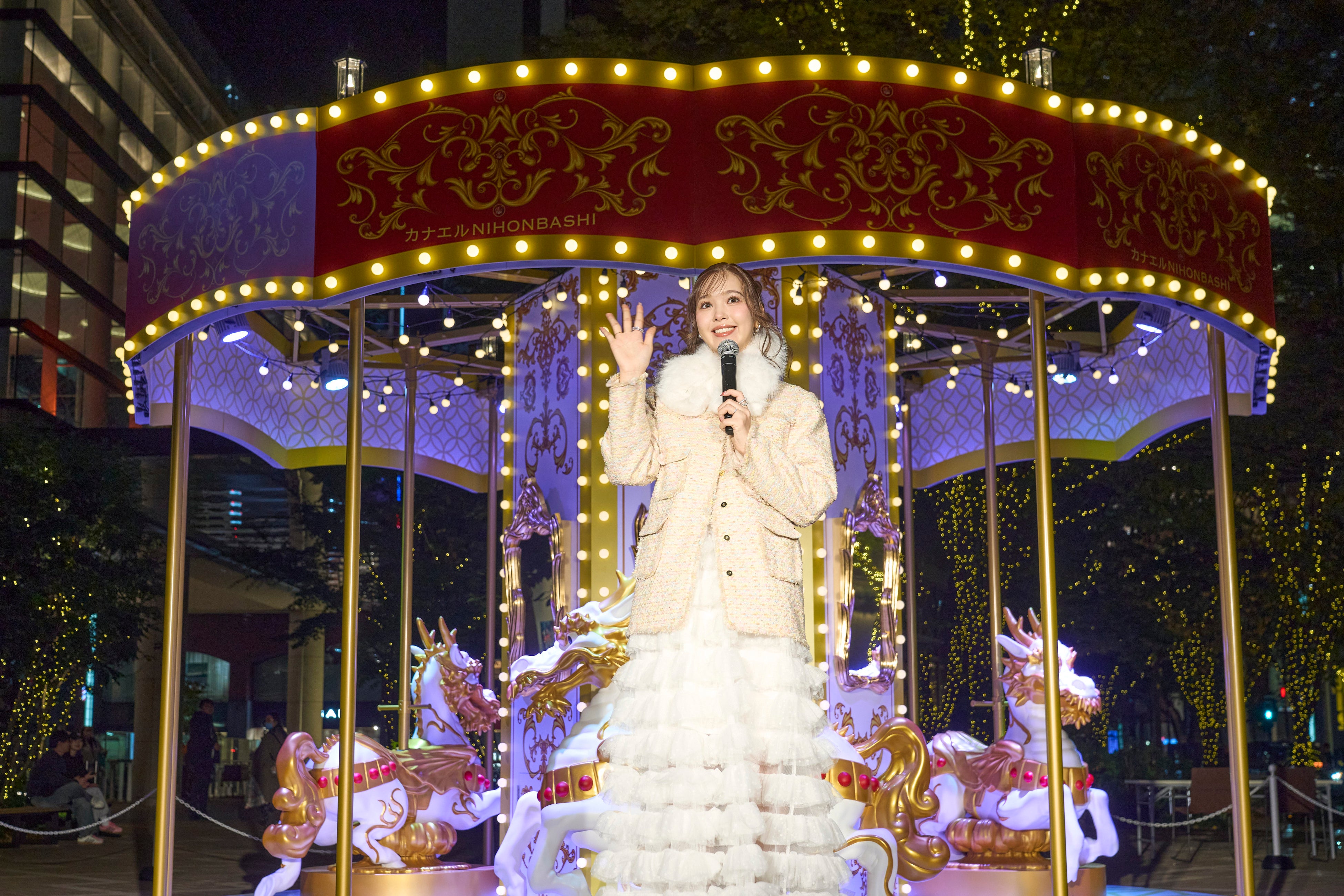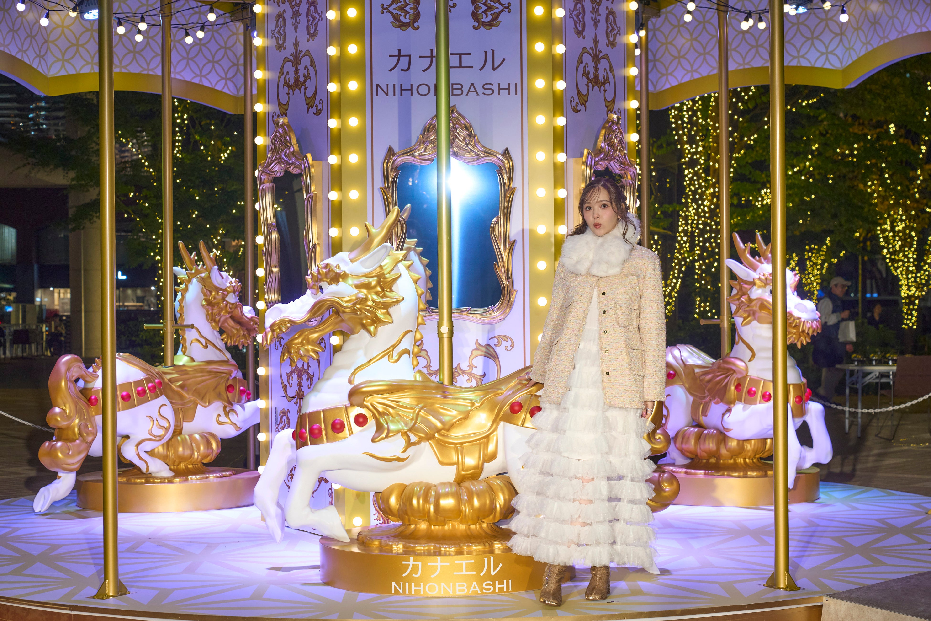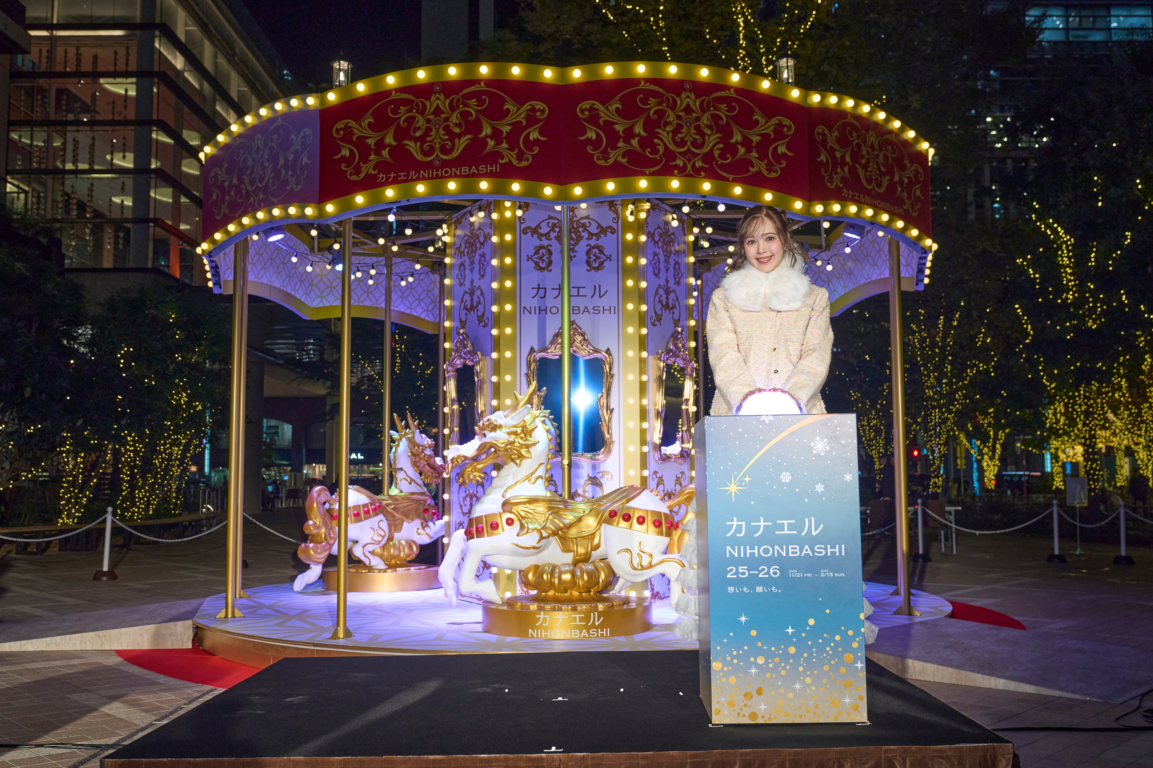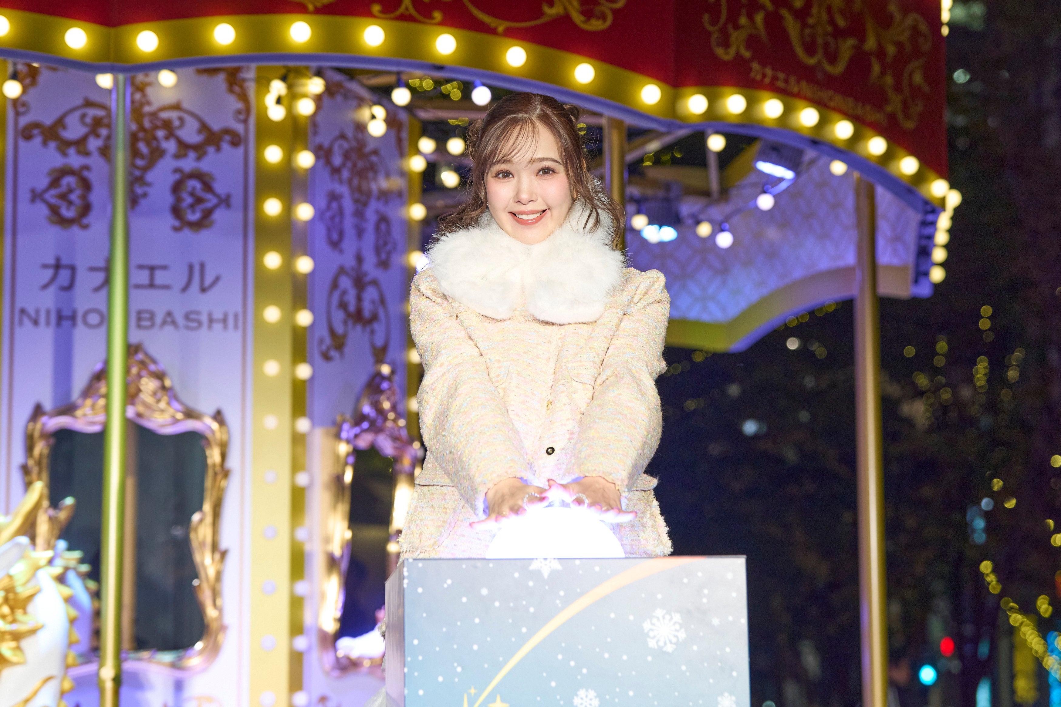 藤田ニコルさんがメインシンボルの点灯式に登場!日本橋ならではの幸福を呼ぶ“麒麟ゴーラウンド”が点灯