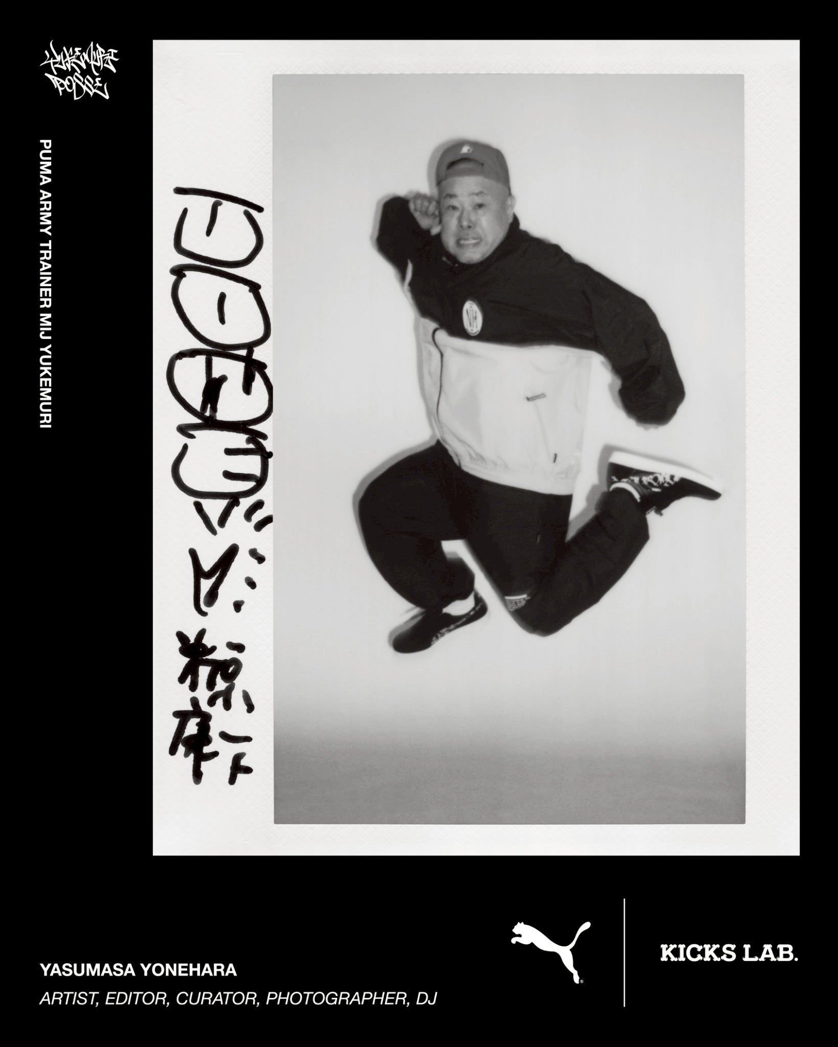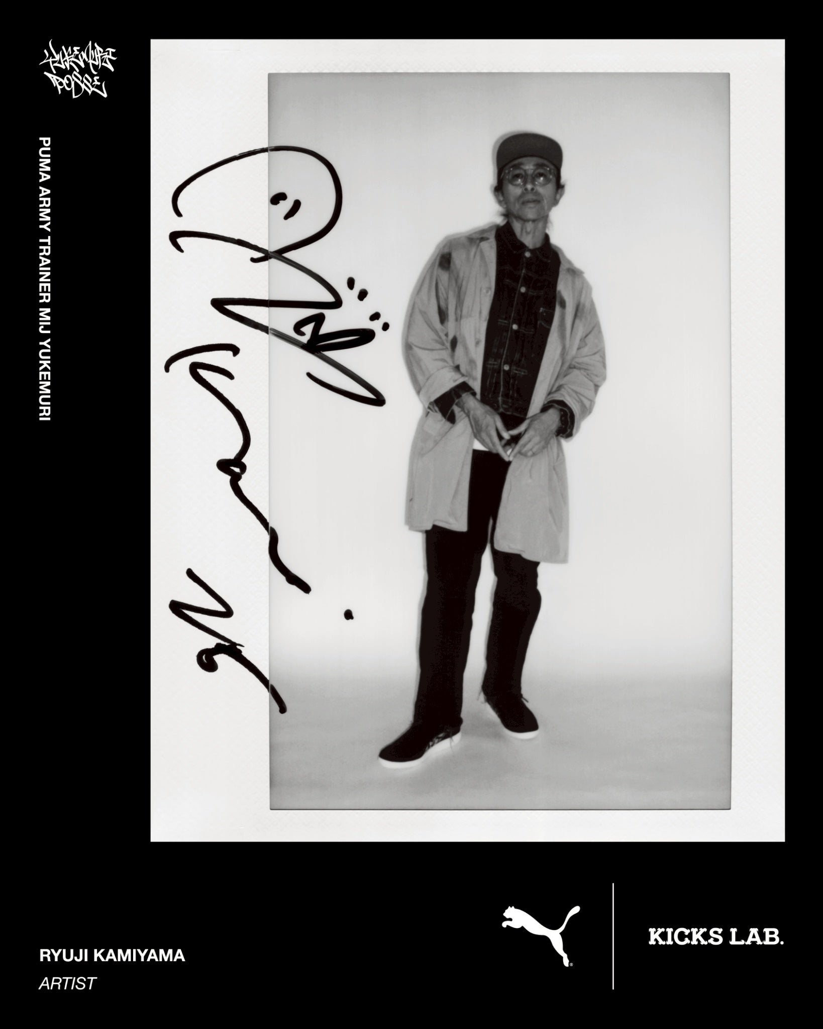 <PUMA ARMY TRAINER>の日本製モデルをベースに、変幻自在のアーティスト集団<YUKEMURI POSSE>がデザインを担当し、<KICKS LAB.>が監修したコラボレーションモデル。
