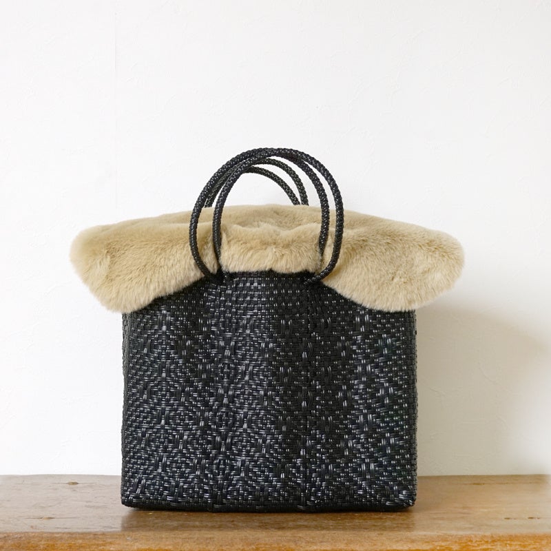 夏の印象の強いメルカドバッグですが、ファーアイテムを合わせることで秋冬のかごバッグに大変身。