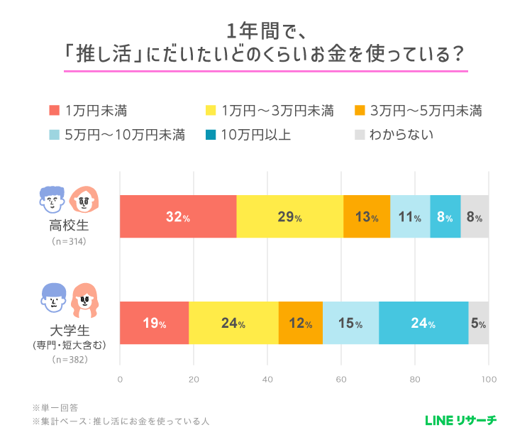 LINEリサーチ、全国の15~25歳の学生を対象に、推し活に関する調査を実施