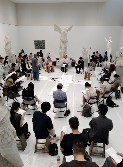 本プログラムは2022年よりスタートした、公開された「芸術制作」の現場で「哲学対話」を実践することで、芸術的思考の始まりを哲学的視座から「言葉」と「行為」を通して明らかにする実践的な研究です。美術におけるライブペイントやパフォーマンスと、哲学における哲学対話(哲学カフェ)を同時に開催し、哲学者やアーティストと一般の鑑賞者を交え「美術とは何を目指したどのような営みであるのか」について、全国の哲学者を集めて議論と実践を行う場を設定しています。