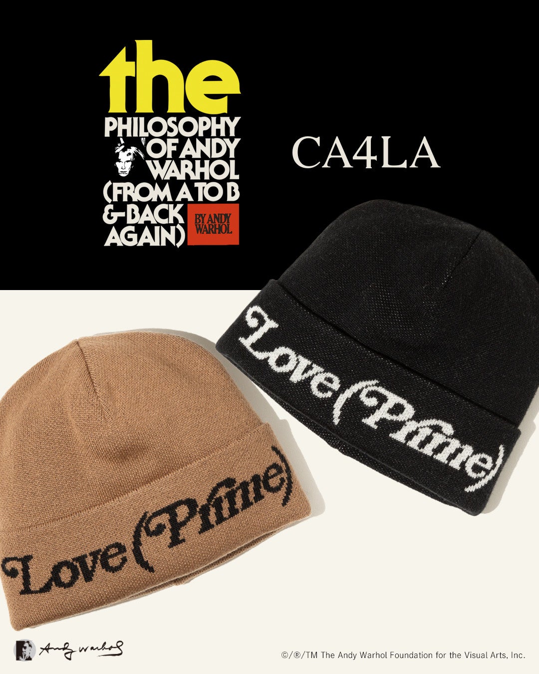 本書を彩る特徴的なデザインのフォントで綴られた言葉「LOVE (Prime)」をジャカードで表現したニットキャップ。肌触りの良いアクリルウールの糸をハイゲージで編み上げ、シンプルで日常使いしやすいアイテムに仕上げています。