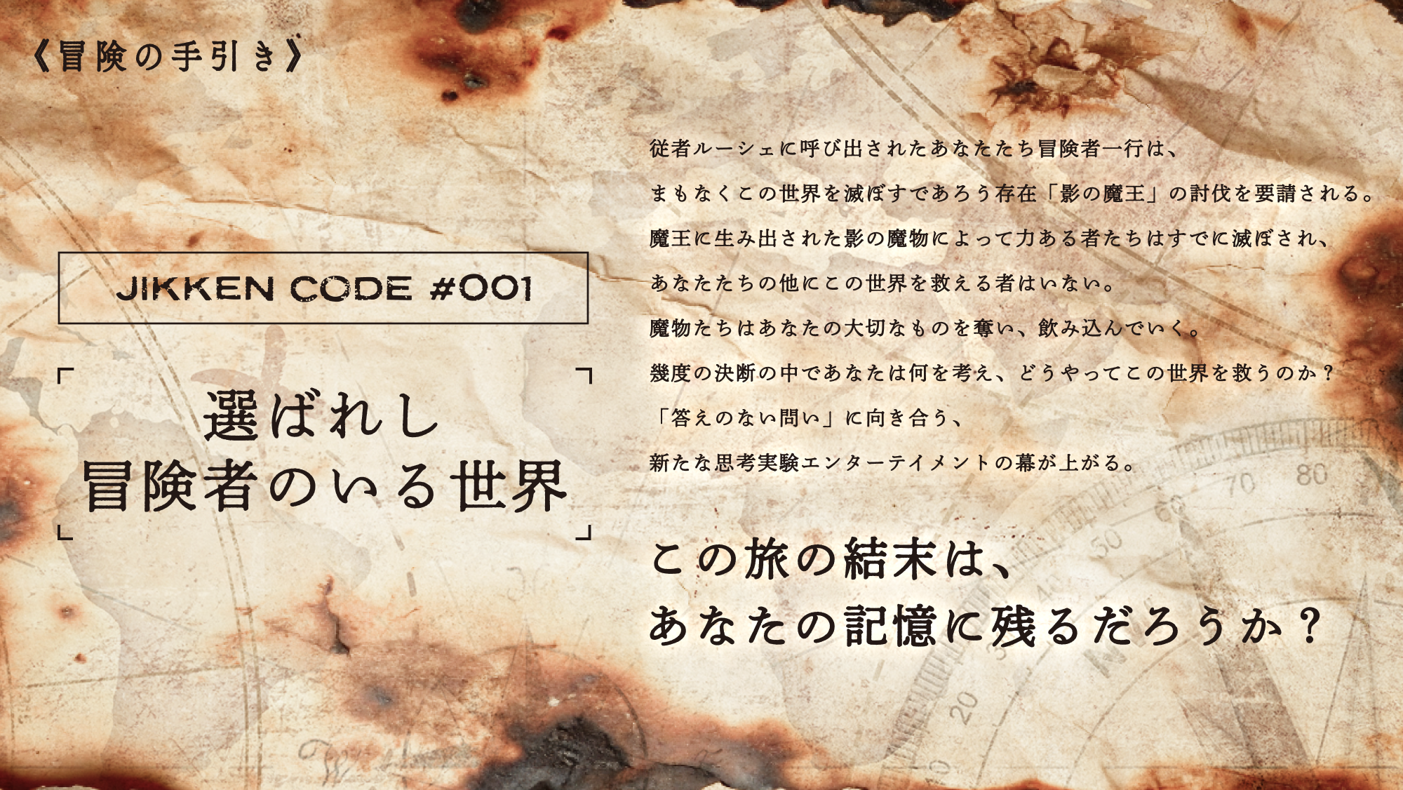 タイトル:思考実験展 JIKKEN CODE#001ー選ばれし冒険者のいる世界ー開催期間:2025年12月27日(土)~2026年1月18日(日)10:00~20:00(最終受付18:30)
