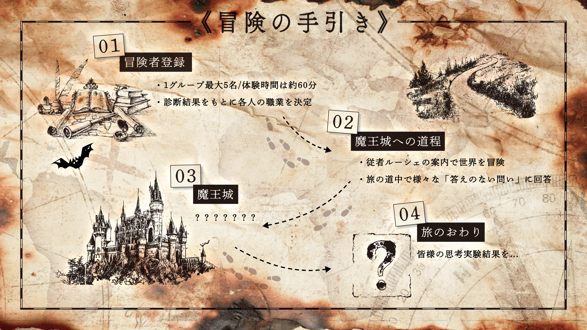 来場者は物語の主人公として物語世界に入り、TRPGの名作『カタシロ』の作者・ディズム氏が手掛けたシナリオに基づく数々の“答えのない問い”に向き合いながら、自身の価値観を浮かび上がらせていきます。