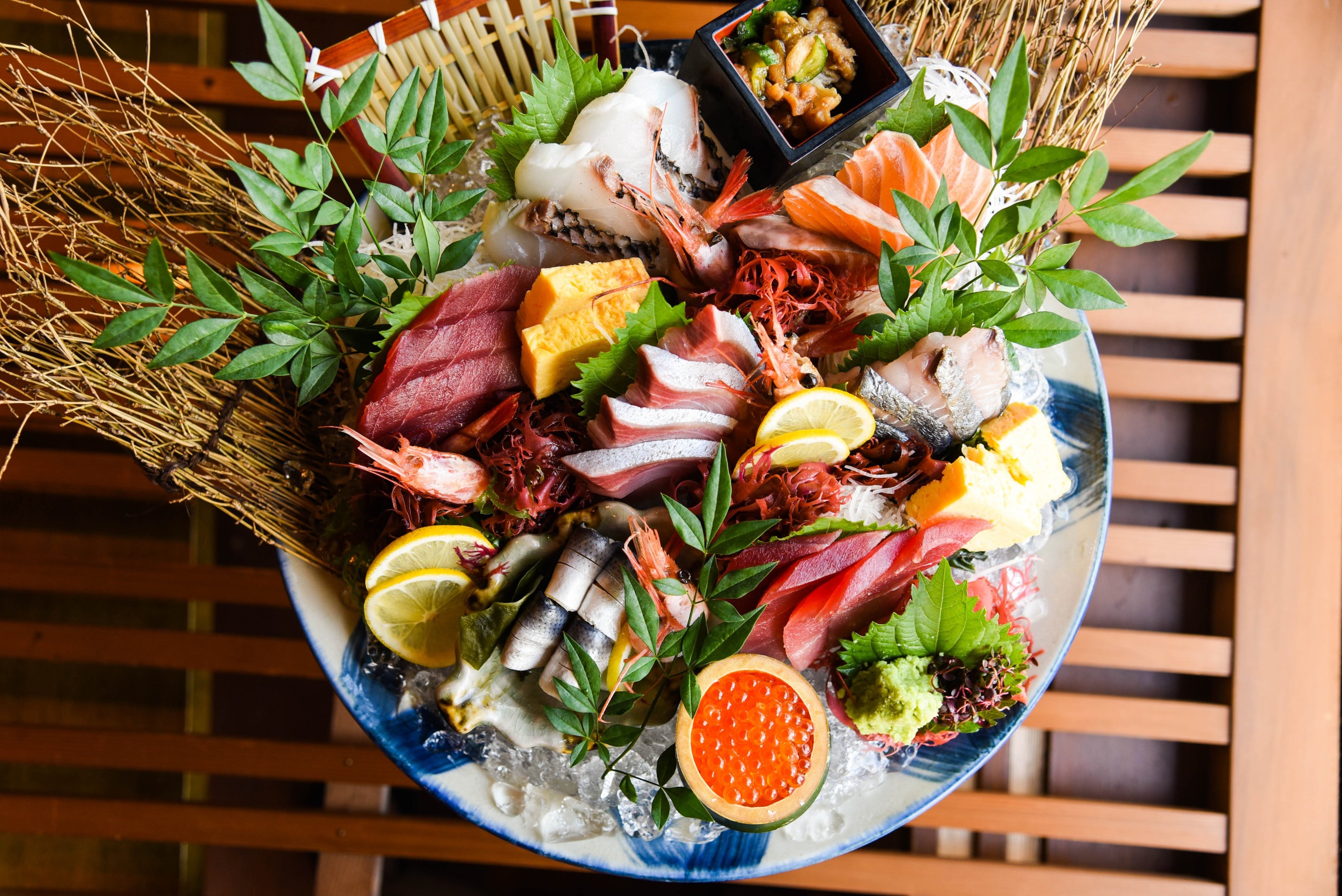 せでございます。かいわれ大根やレモン、わさびなど、ちょっとし