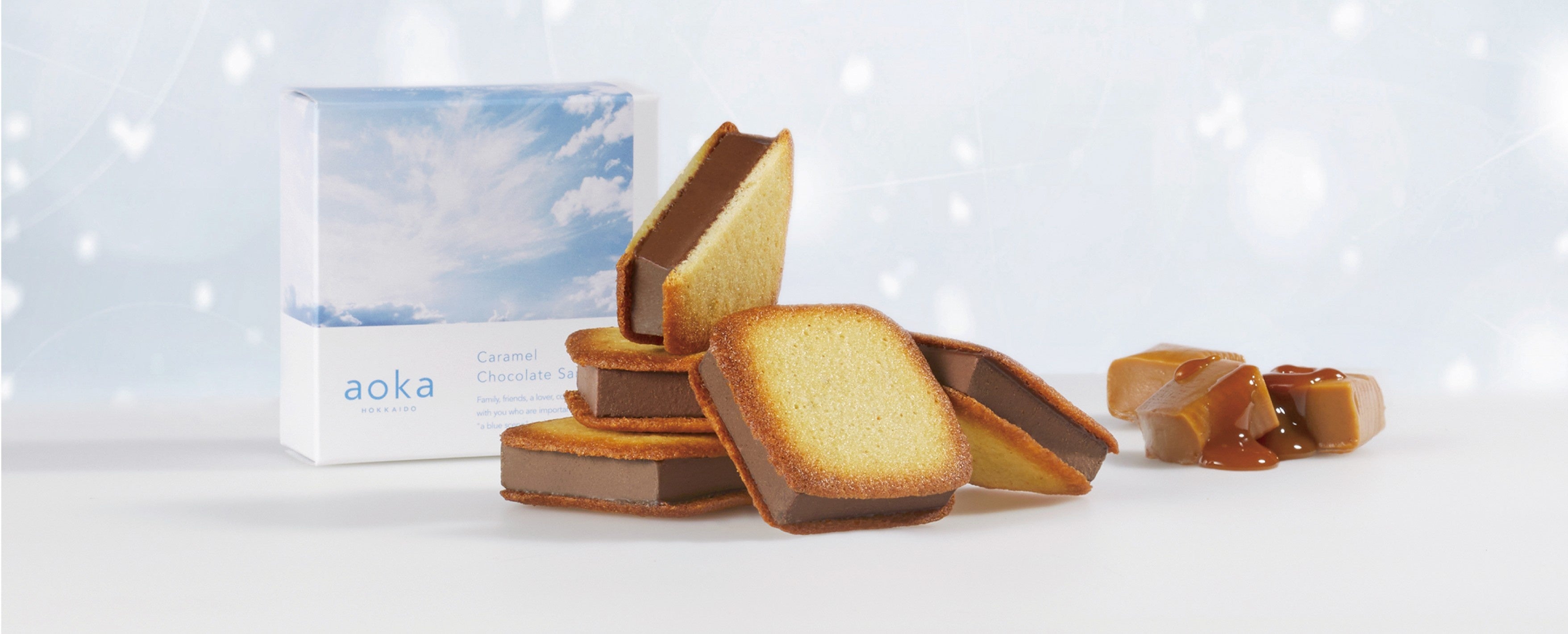 〈aoka〉キャラメルチョコレートサンド 1個入 410円、4個入 1,640円、8個入 3,281円/1階MVPスイーツ(中央入口前)