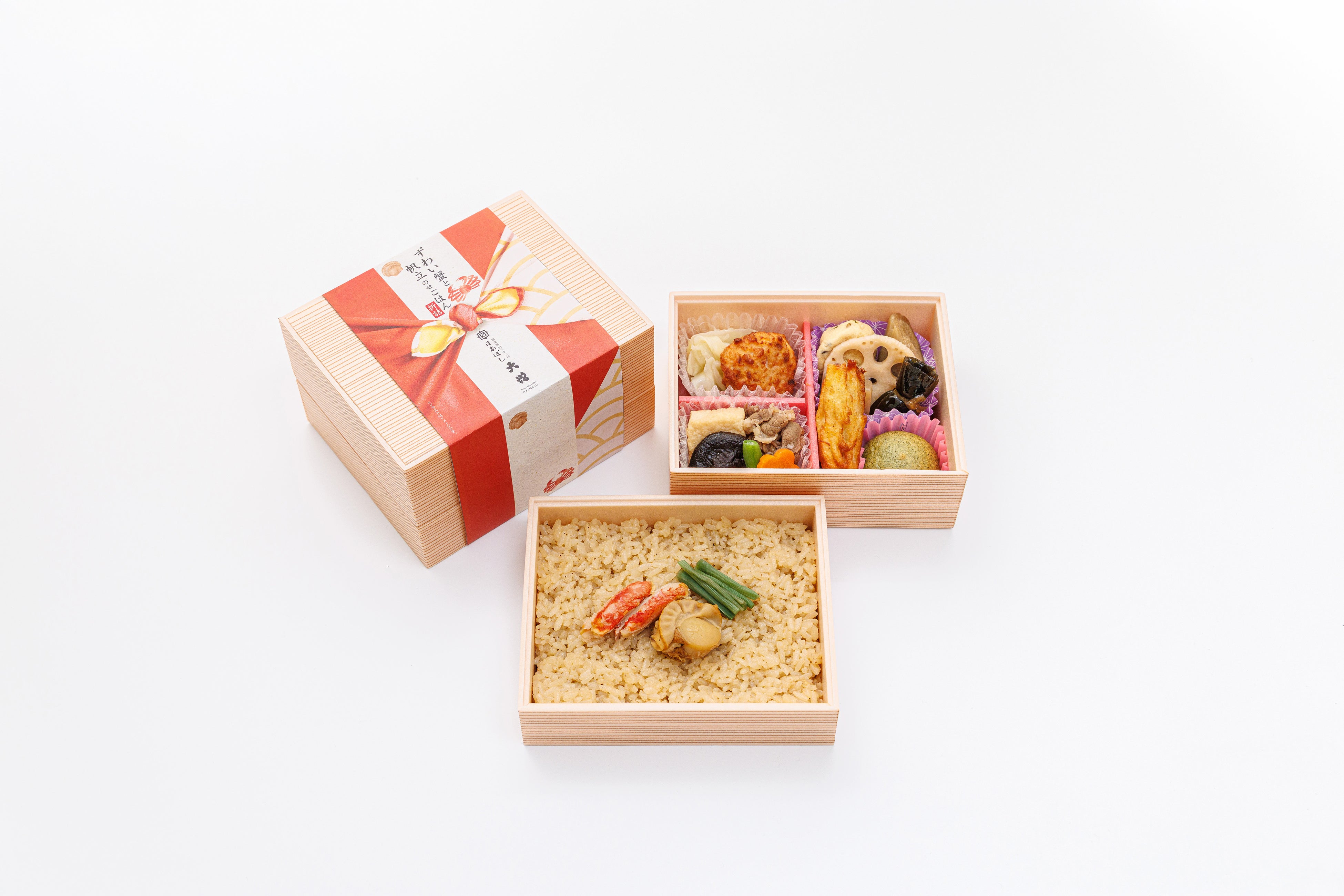 冬季限定のこだわりの料理を詰めあわせた折詰です。ご飯に「青森県産帆立」と「青森県産さめ節入りだし」を使用。おかずに青森県の郷土料理をイメージした「イカメンチ」、「青森県産にんにく入り塩麹」を使用したキャベツ炒めを盛り込みました。