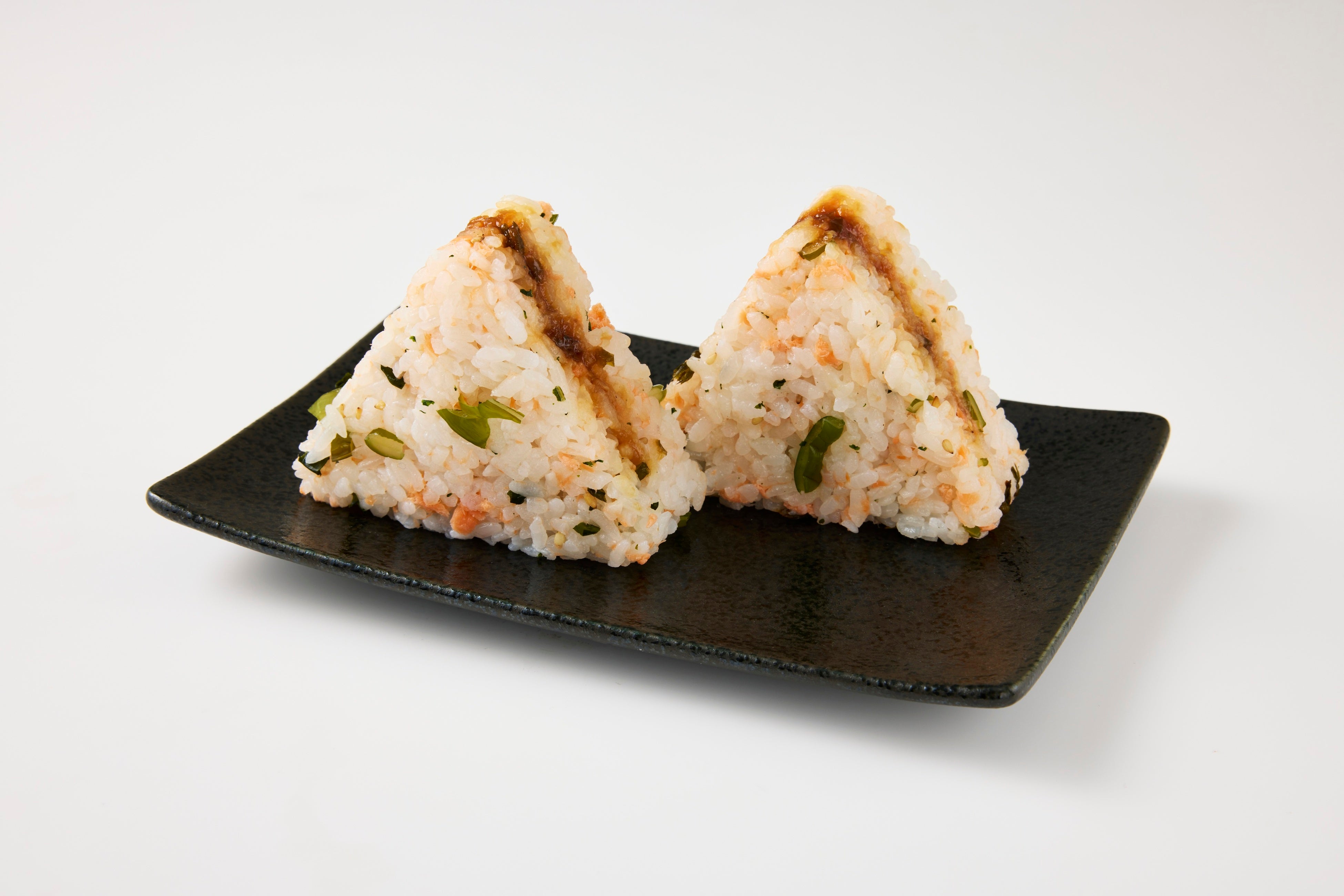 青唐辛子・米糀・醤油で作られたピリッとした辛さがクセになる「こうじなんばん」を、しその実がふわっと香る鮭と茎わかめの混ぜごはんでむすびました。