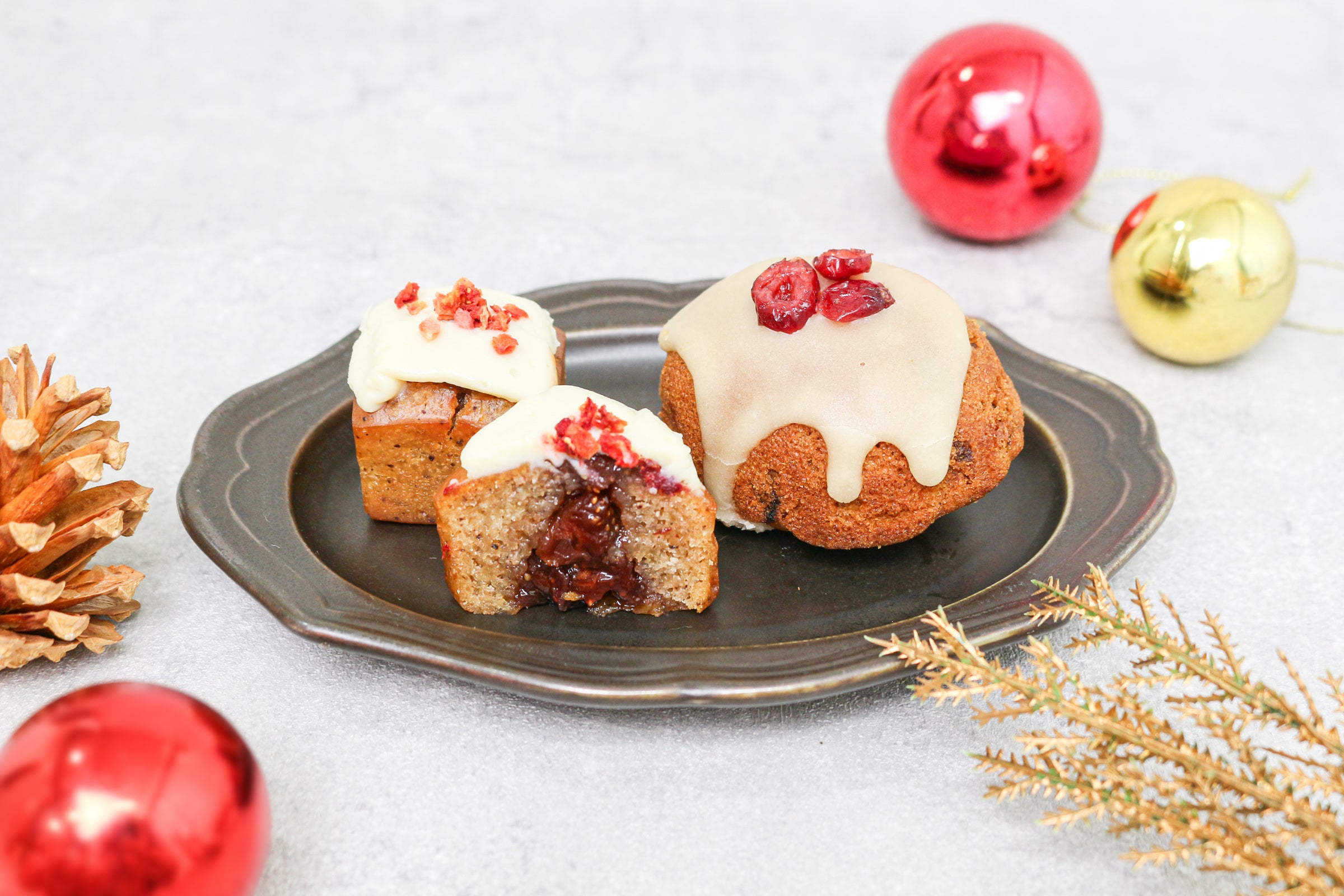 左:『VGGFいちごショートフィナンシェケーキ』/右:『VGGFシュトーレン』(販売中)