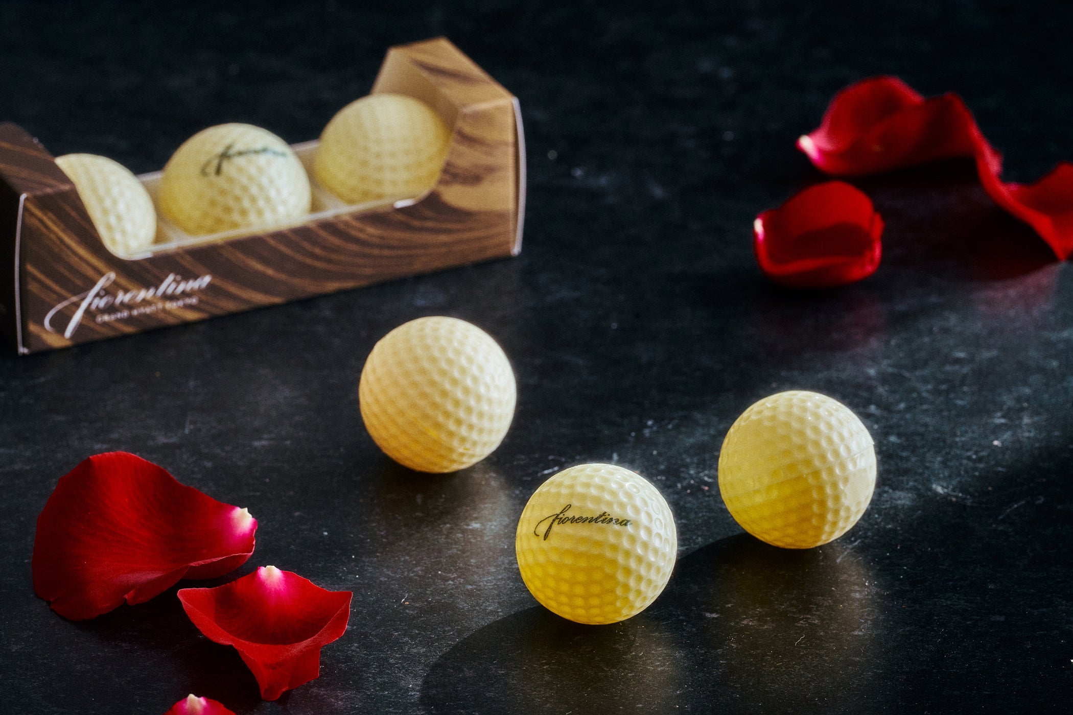 パティシエの遊び心が詰まった、ユニークなゴルフボール型のショコラが今年も登場。フィオレンティーナのロゴを入れたホワイトチョコレートの中には、ホワイトチョコレートでコーティングしたカリカリ食感のライスパフが詰まっています。ゴルフファンを虜にする一品です。