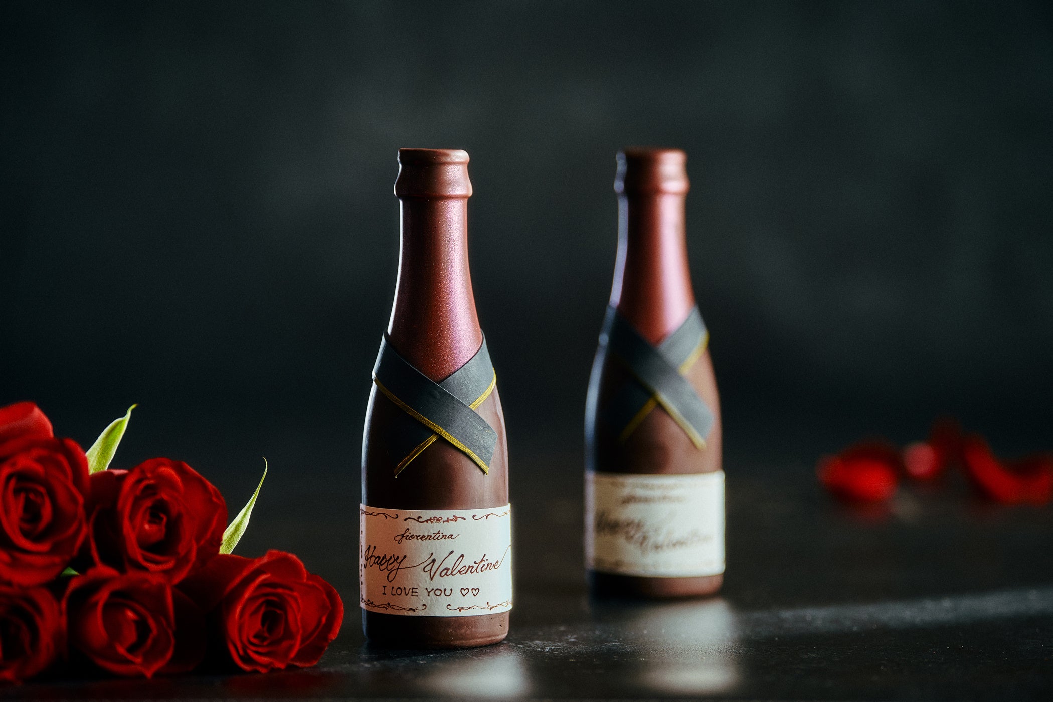 シャンパンボトル丸々一本がホテルオリジナルのチョコレート「Grande H」でできた、ユニークで豪華なチョコレートが新作で登場。チョコレートでできたラベルにはお好きなメッセージを入れることも可能です。緻密な技が光るチョコレートは、バレンタインデーをより一層華やかに演出いたします。