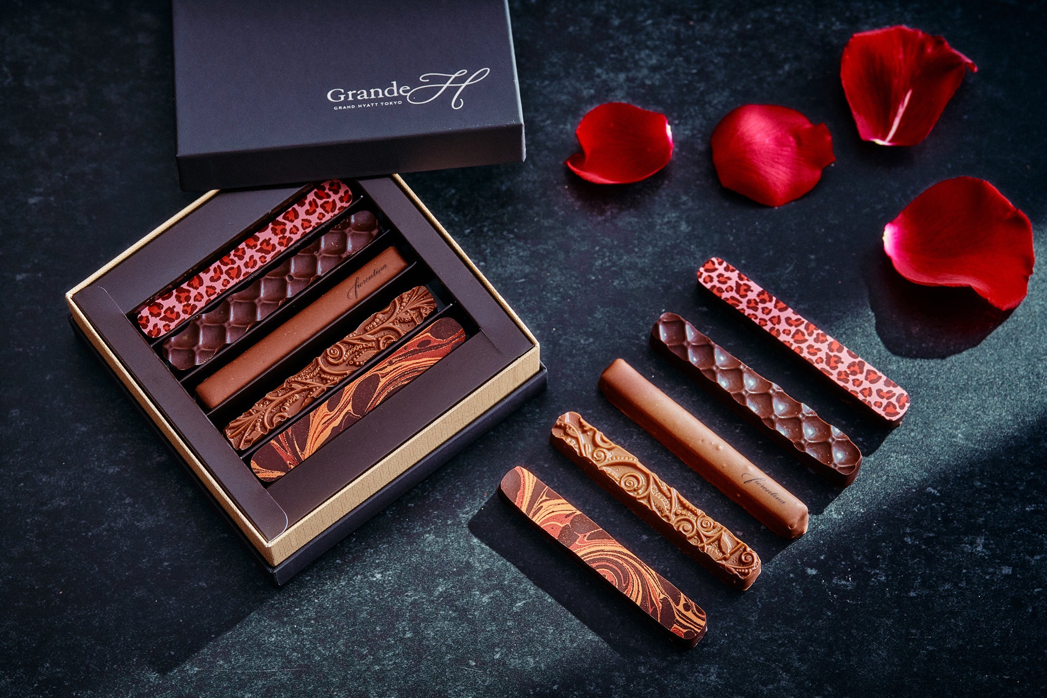 レギュラーメニューでも人気の「Grande H バトンショコラ」が、バレンタインシーズン限定の華やかなデザインで登場。繊細に仕上げられたチョコレートバーには、口どけの良いガナッシュを贅沢にサンド。ホテルのオリジナルチョコレート「Grande H」をはじめ、ストロベリー、抹茶、紅茶、カシスなど、洗練された5種類のフレーバーをアソートにしました。大切な人への贈り物や自分へのご褒美にも最適なデザイン性の高いチョコレートです。
