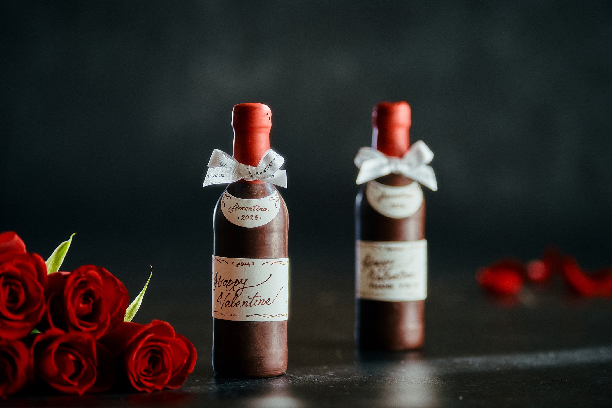 昨年ご好評をいただいた、ワインボトル型のチョコレートが 今年も登場。ホテルオリジナルのチョコレート「Grande H」でできたワインボトルの中には、ローストしたアーモンドをチョコレートでコーティングした香り豊かなアマンディーヌを忍ばせました。チョコレートでできたラベルには大切な方へのメッセージを入れることも可能です。