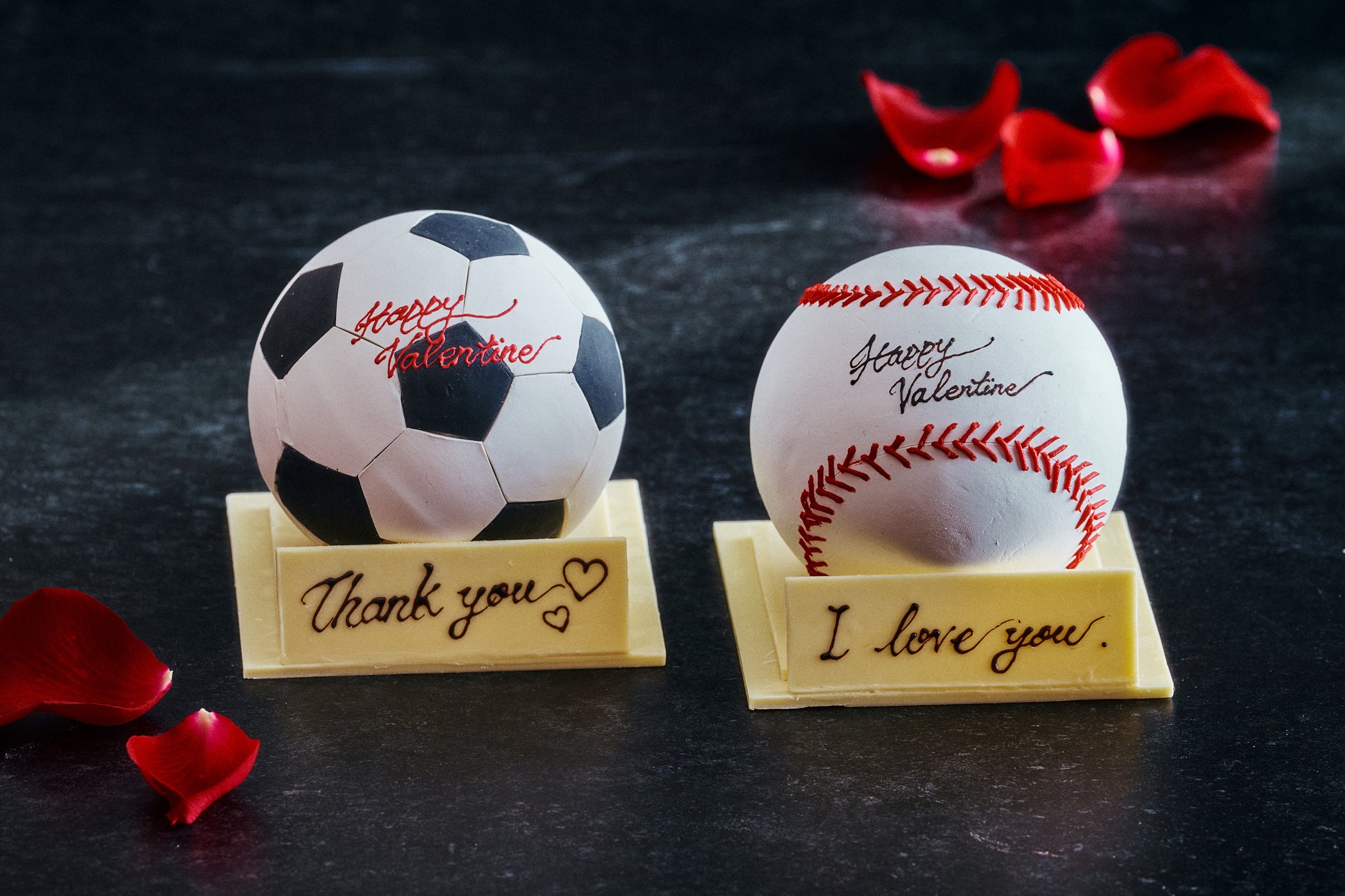 ボールの縫い目や質感まで忠実に再現した、本物そっくりのボール型チョコレートを「野球ボール」と「サッカーボール」の2種類でご用意いたします。繊細な手作業により1パーツずつ繋げてつくるリアルな仕上がりは、まさにパティシエの技が光る一品。ボールの中にはローストしたアーモンドをチョコレートでコーティングしたアマンディーヌを詰め合わせます。台座にはホワイトチョコレートでできたプレートを添え、お好きなメッセージを入れることも可能です。遊び心と上質さを兼ね備えたオリジナルのチョコレートです。