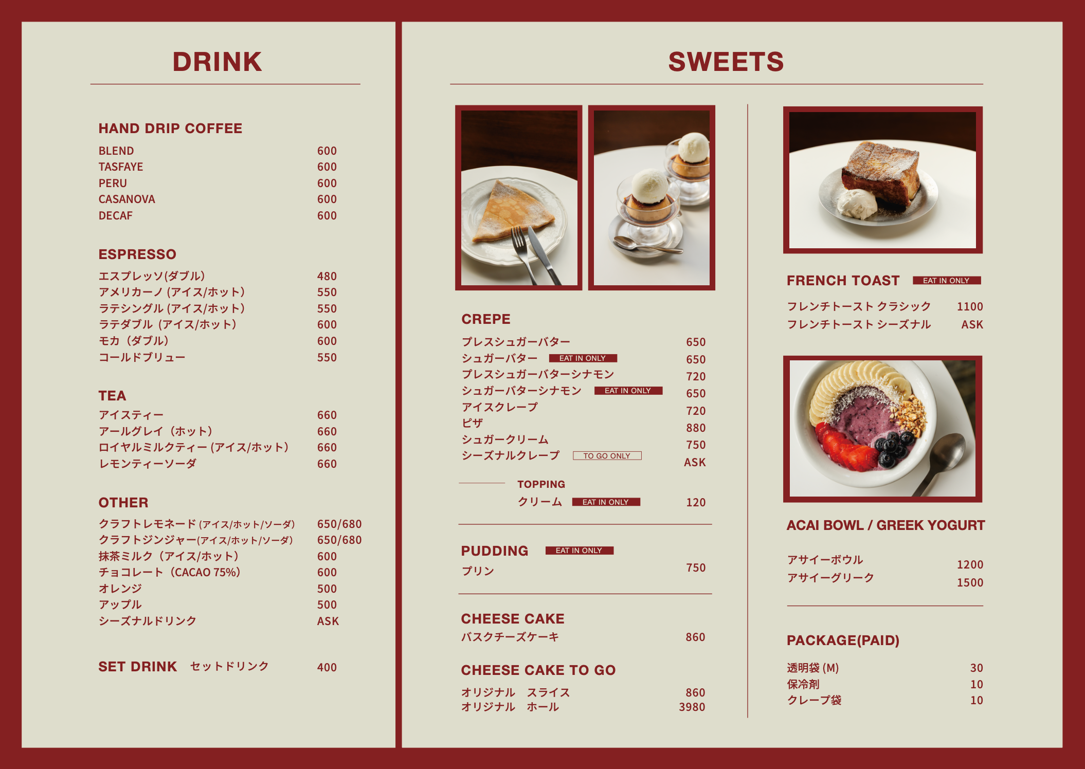 シンプルな喫茶店のスイーツに TO GOもできるクレープを提供