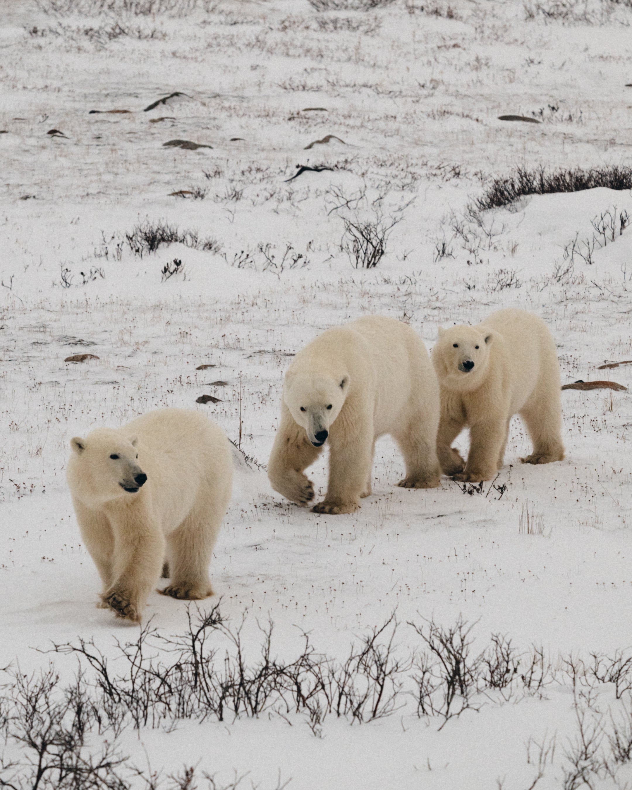 ゲストたちは、マニトバ州チャーチルのツンドラでホッキョクグマの姿を間近に観察