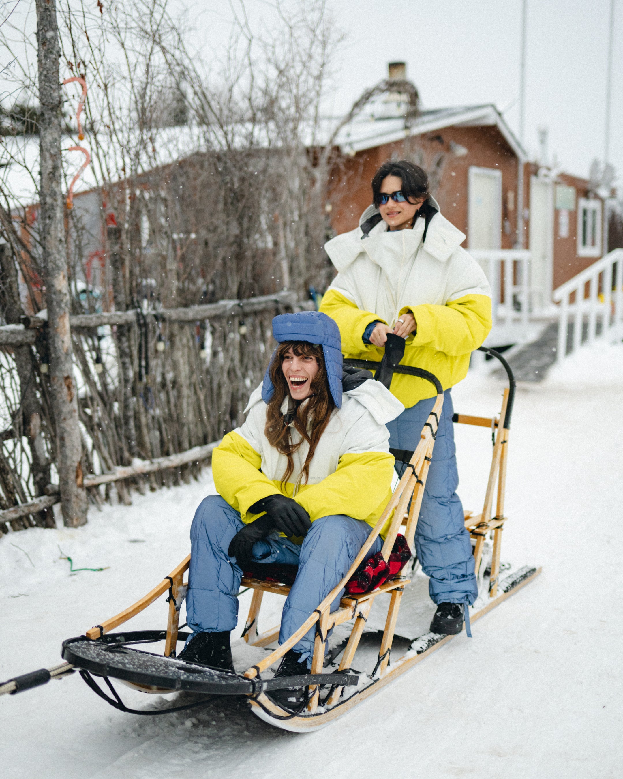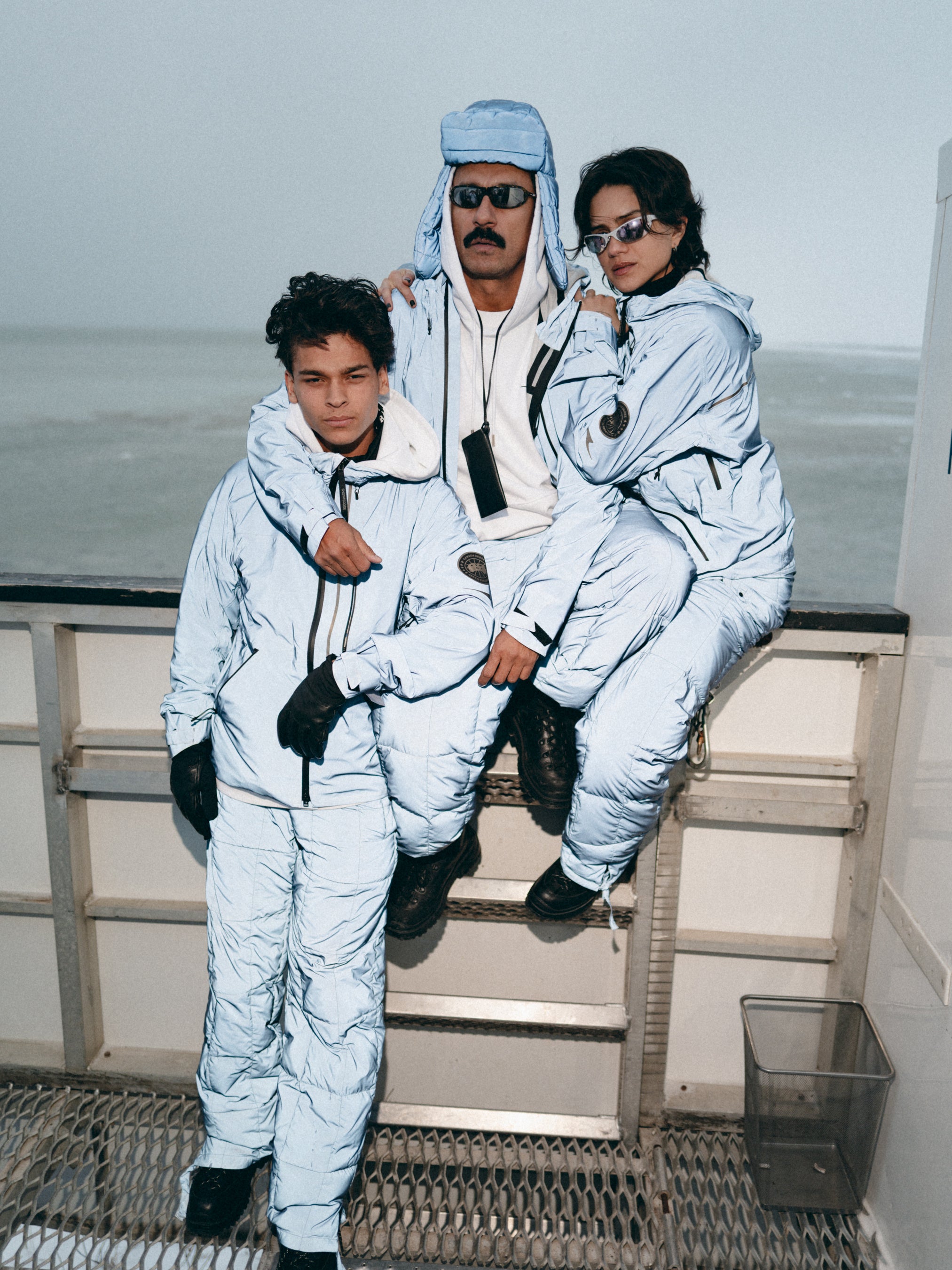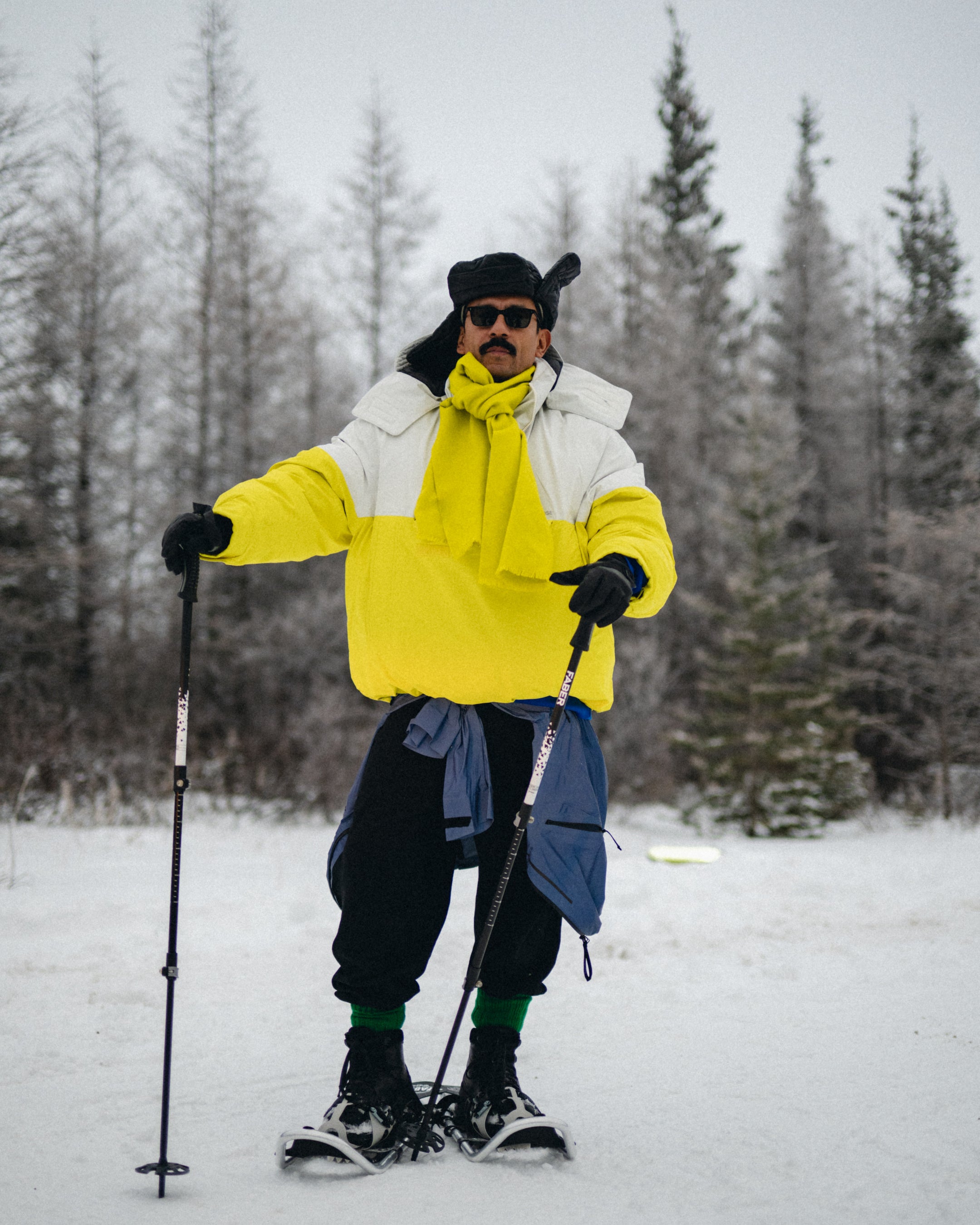 遠征に参加したゲストたちは、2025年秋冬「SNOW GOOSE BY CANADA GOOSE」コレクションを着用。雪景色に溶け込むオールホワイトのパーカ、ハドソン湾の海氷を映すブルー、雪の中で鮮やかに映えるイエローや蛍光グリーンのアクセントなど、カナダグースならではの美しいカラーと高い機能性を体感しました。