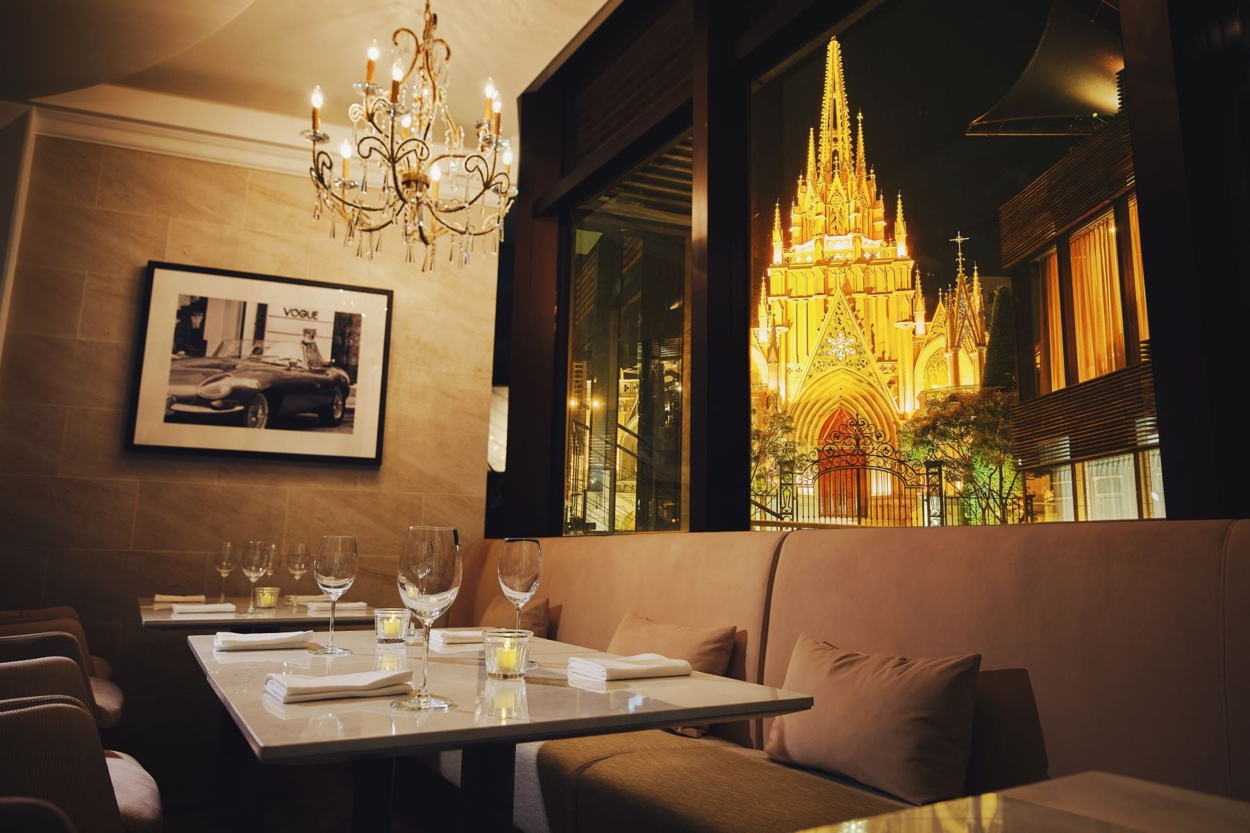 青山・表参道という都内屈指の好立地にある「St.GRACE Lounge & Dining」は、ニューヨークの街並みのような非日常空間で、目の前にそびえる大聖堂を眺めながら食事を堪能できることが最大の特徴です。