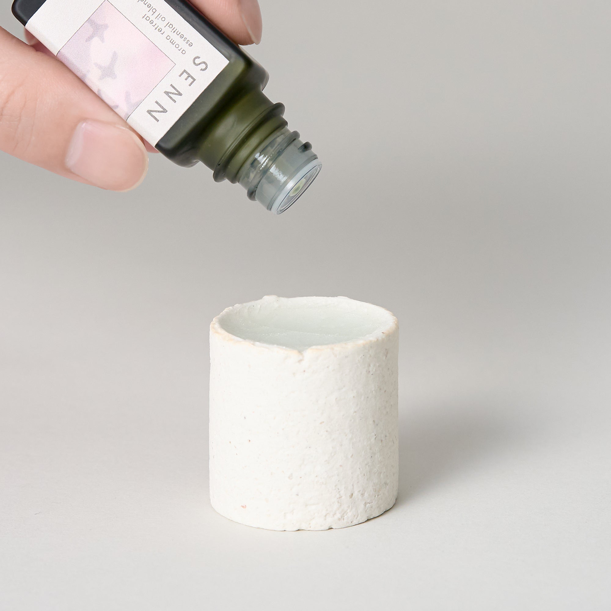 香りのしずくを、日々のあわいに。精油を垂らすだけで、香りが穏やかに広がる陶製のアロマディフューザー。玄関や寝室、デスクまわりなど、どこでも安全に香りをお愉しみいただけます。2人の作家の個性が際立つ6種類のディフューザーをご用意しました。