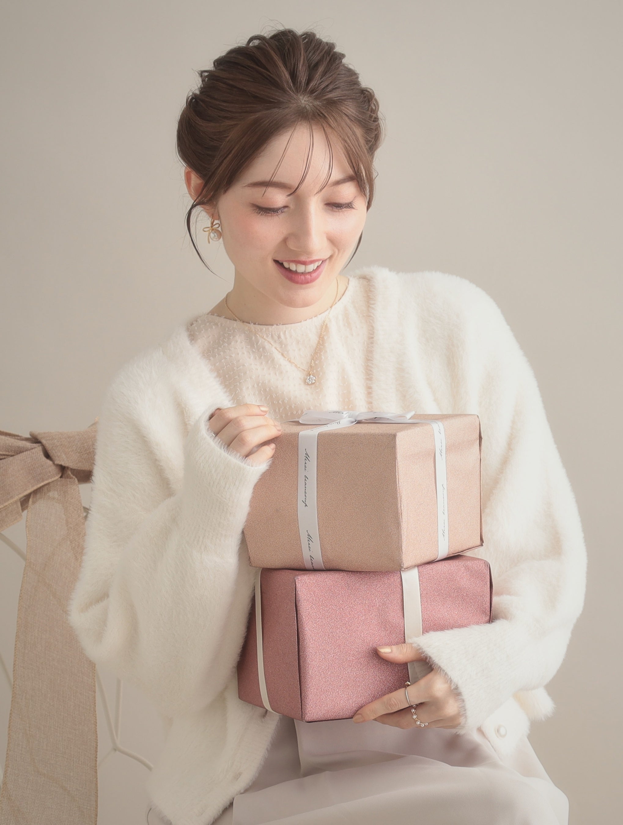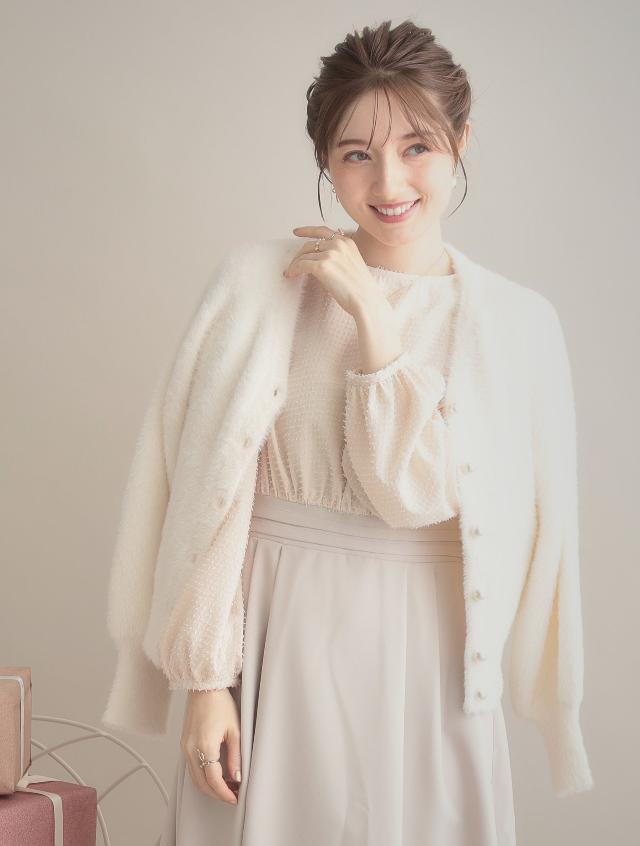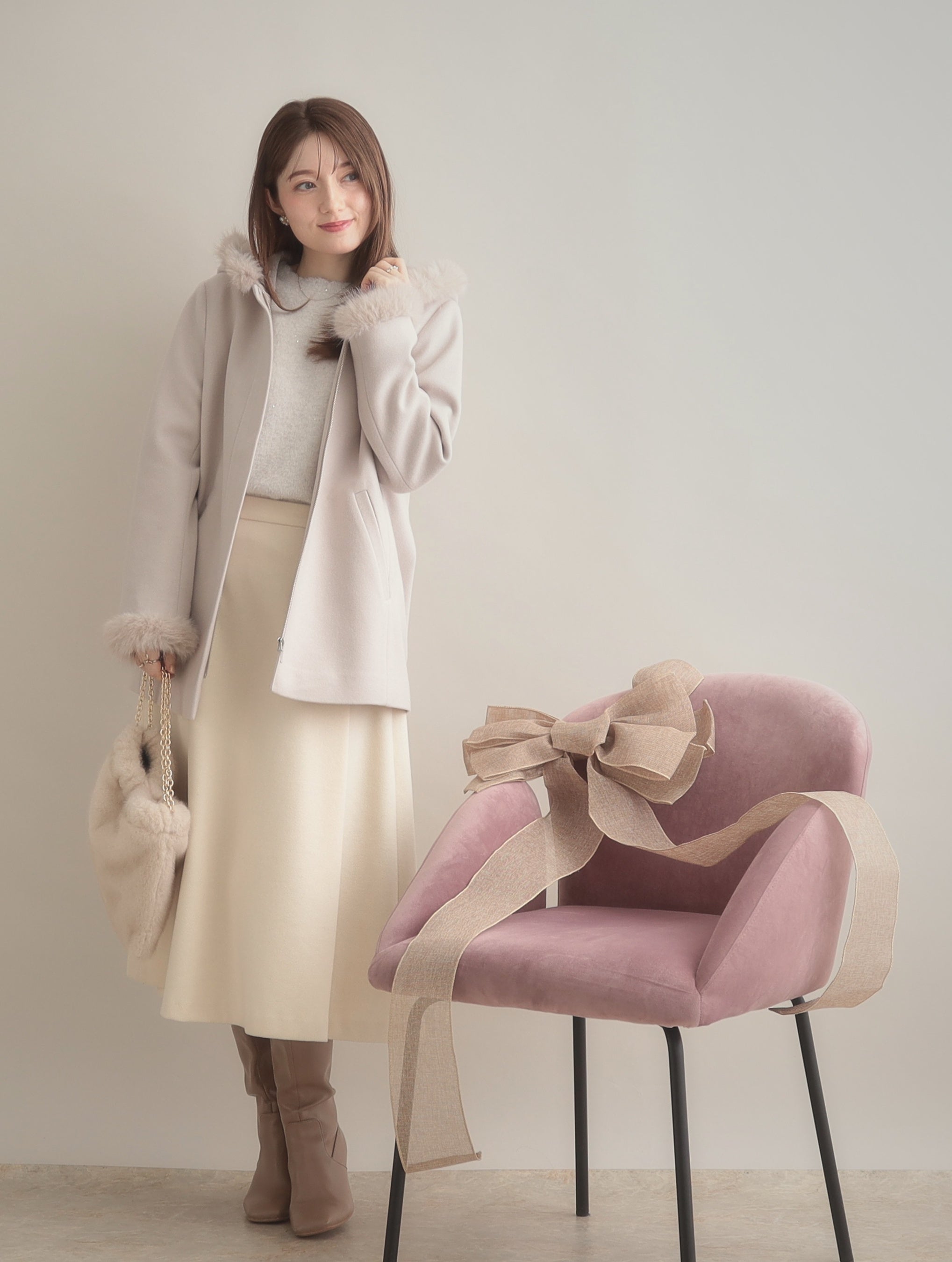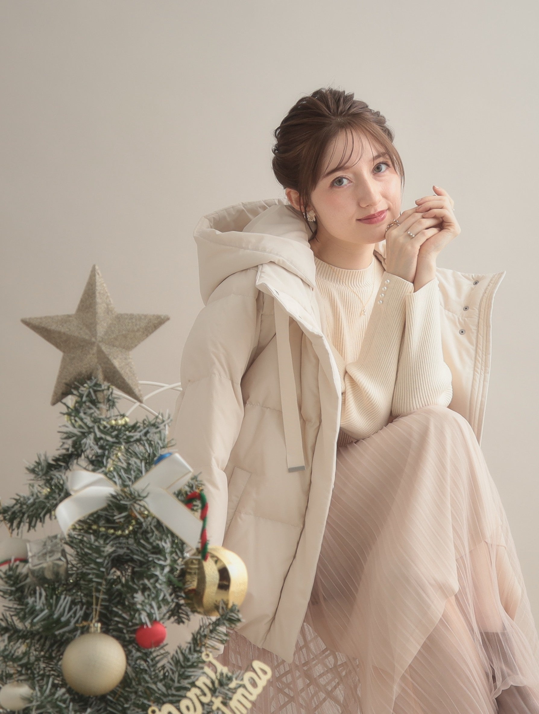 今回の特集ページでは、ホリデームードを高めてくれるホワイトを基調としたスタイリングをラインアップ。ふわふわとした質感が愛らしいニットや、上品にきらめくドッキングワンピース、大人気アイテムのダウンなどを取り入れた、大人フェミニンなスタイリングを提案いたします。
