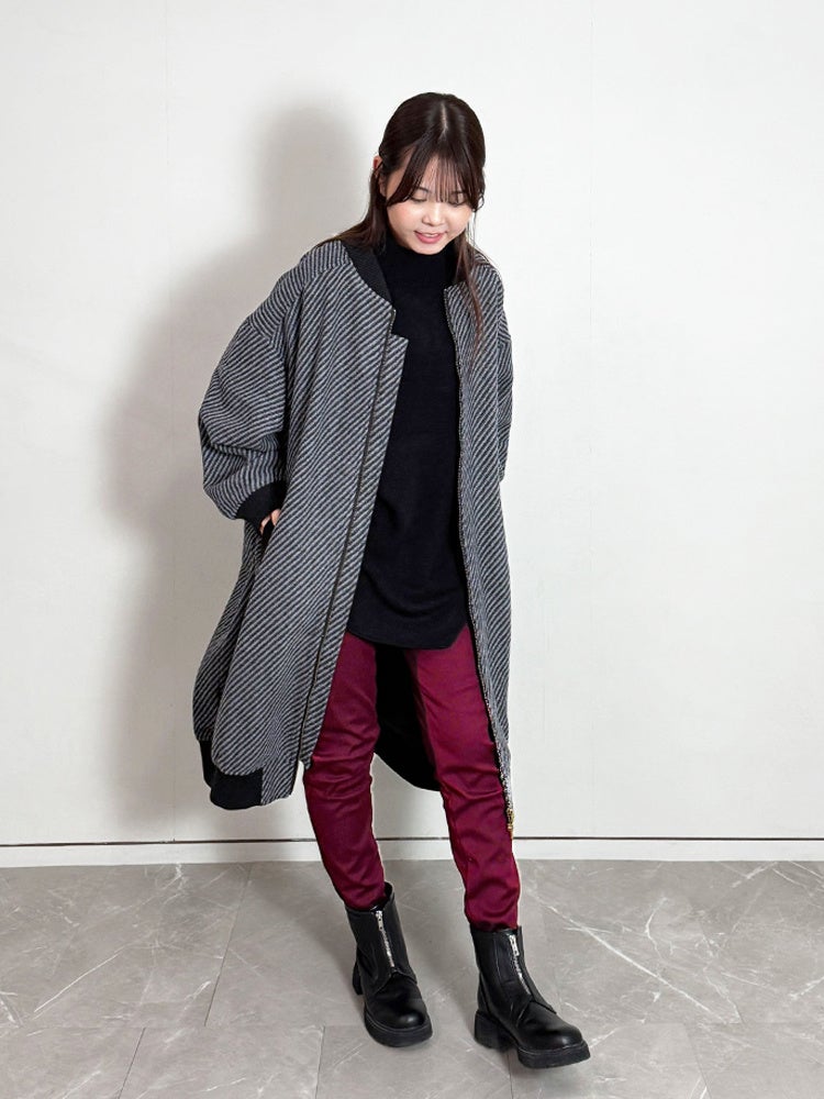 暖かさ重視だと諦めていたスキニーシルエットを、裏起毛素材で実現。ごわつきがないため、タイツを重ねた時のような野暮ったさがありません。ブーツインしやすいレギンスパンツで、防寒とシャープな美脚ラインを両立した着こなしにオススメです。