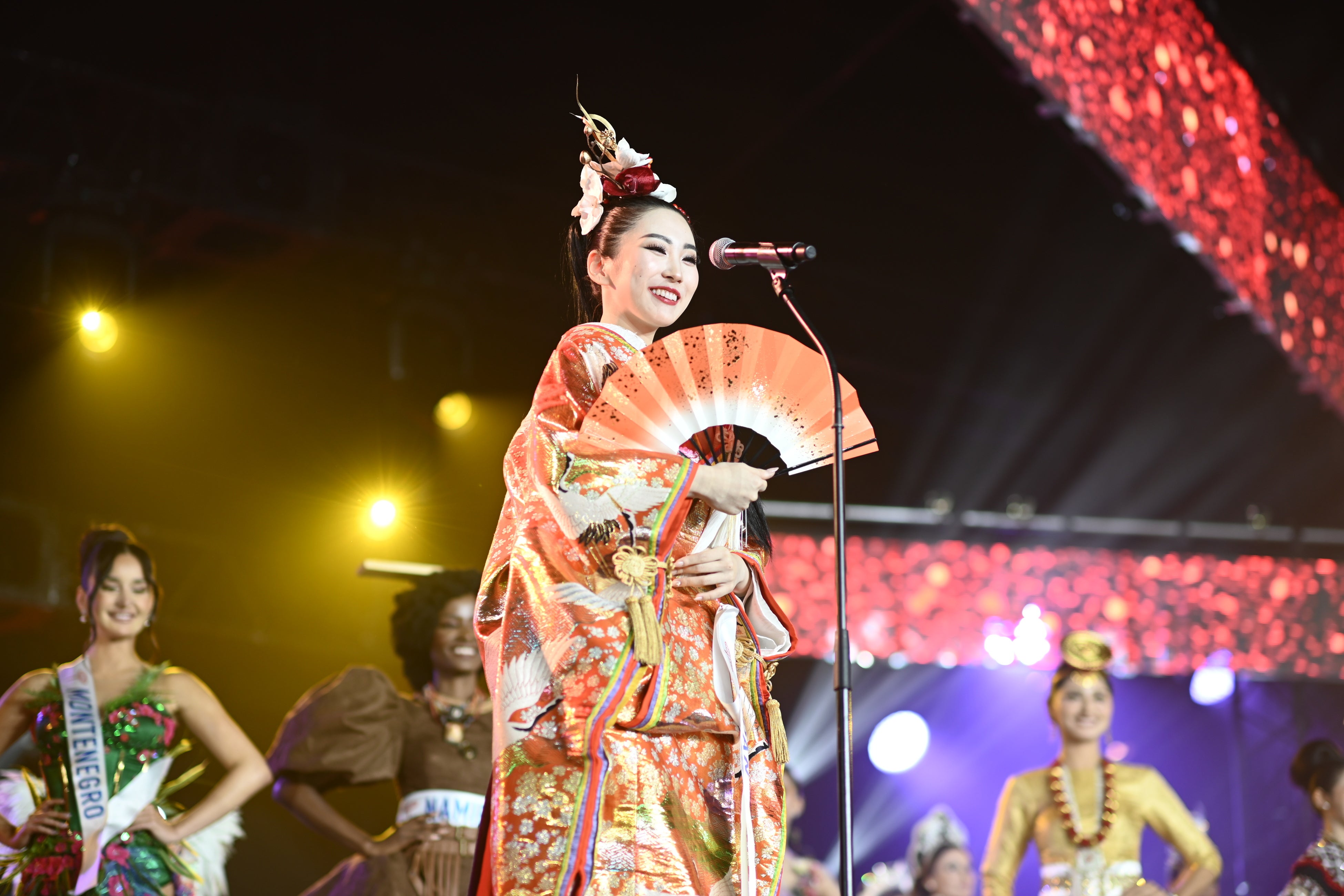 特に民族衣装審査では、世界80の国と地域から集まった“美と平和の親善大使”たちが、自国の文化と誇りを体現した衣装でランウェイを彩りました。日本代表は伝統的な「着物」で優雅さを表現し、カナダ代表は「スキー」をテーマにしたユニークな衣装、アメリカ代表は「ハリウッド映画」をモチーフにした華やかなスタイルで登場するなど、各国の個性が鮮やかに披露されました。